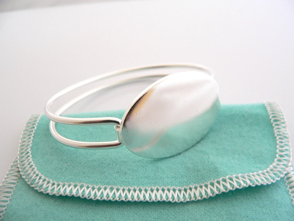 Overview: Offered for sale is a gorgeous and wonderful Tiffany and Co. Silver Oval ID Tag Double Wire Bangle / Bracelet. This piece is made from solid Tiffany silver, and yet has a very dainty and feminine touch to it. Very elegant, versatile, and comfortable piece! Great piece to wear to work, or for just going to dinner with friends in jeans or a pretty dress. The style is classic Tiffany, making it a piece that you will most certainly use over and over again. The ID section is currently unengraved on its front and back, and is ready to be personalized - should you choose to do so. A great Tiffany piece to start or add to your collection. No longer in production, it is perfect for the collector. The piece is fully hallmarked and is guaranteed to be 100% authentic. It will come with its Tiffany pouch as shown! Perfect and ready for gifting! Wonderful present for yourself or anyone you love! Will surely delight! Particulars: Size & Measurements: The bracelet is 2.3 inches at its widest ends. Metal & Hallmarks: Tiffany & Co. / 925 Solid 925 sterling silver Please check out my other unique and interesting Tiffany items on sale.