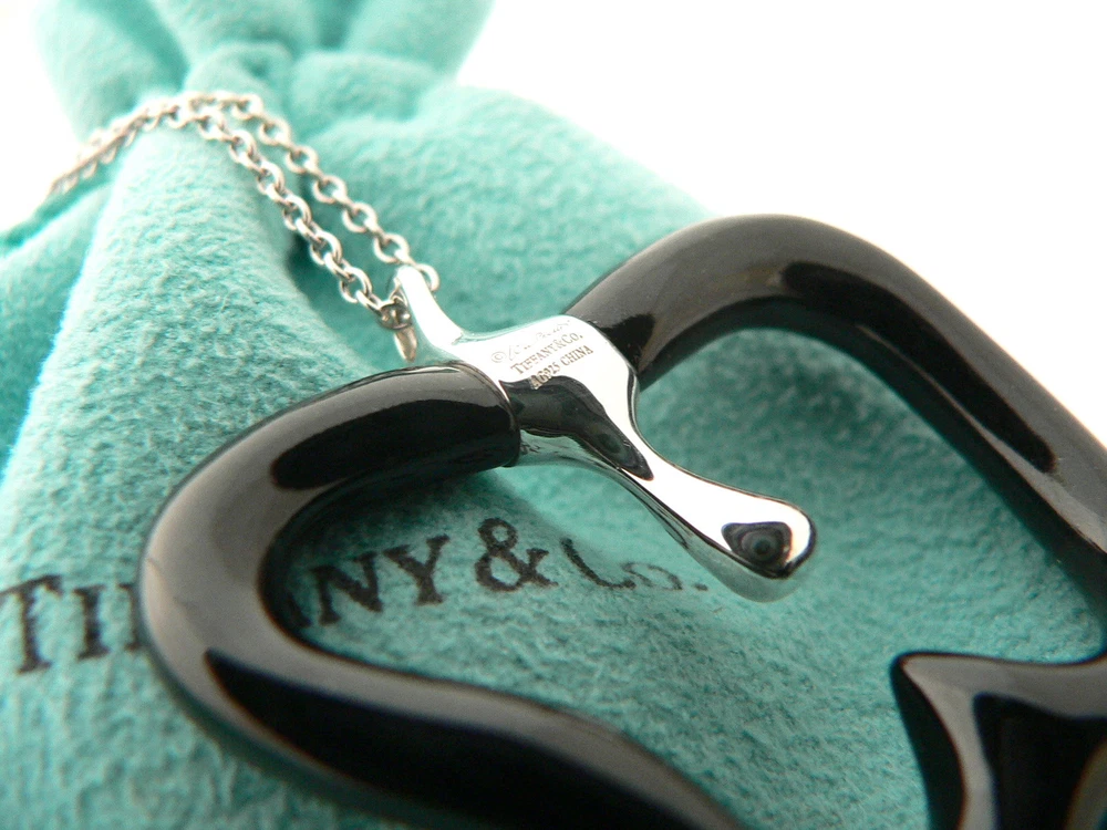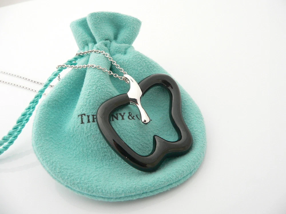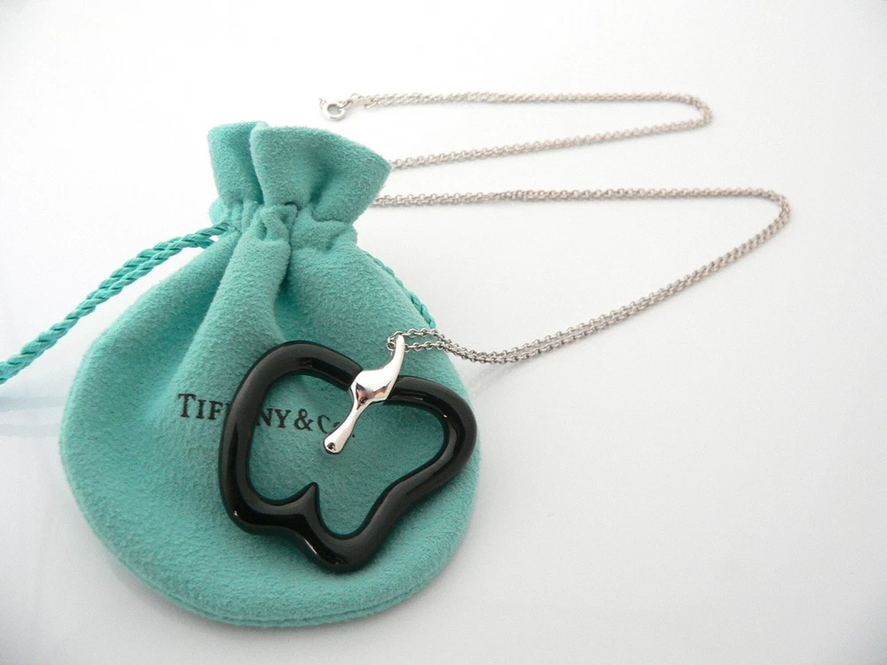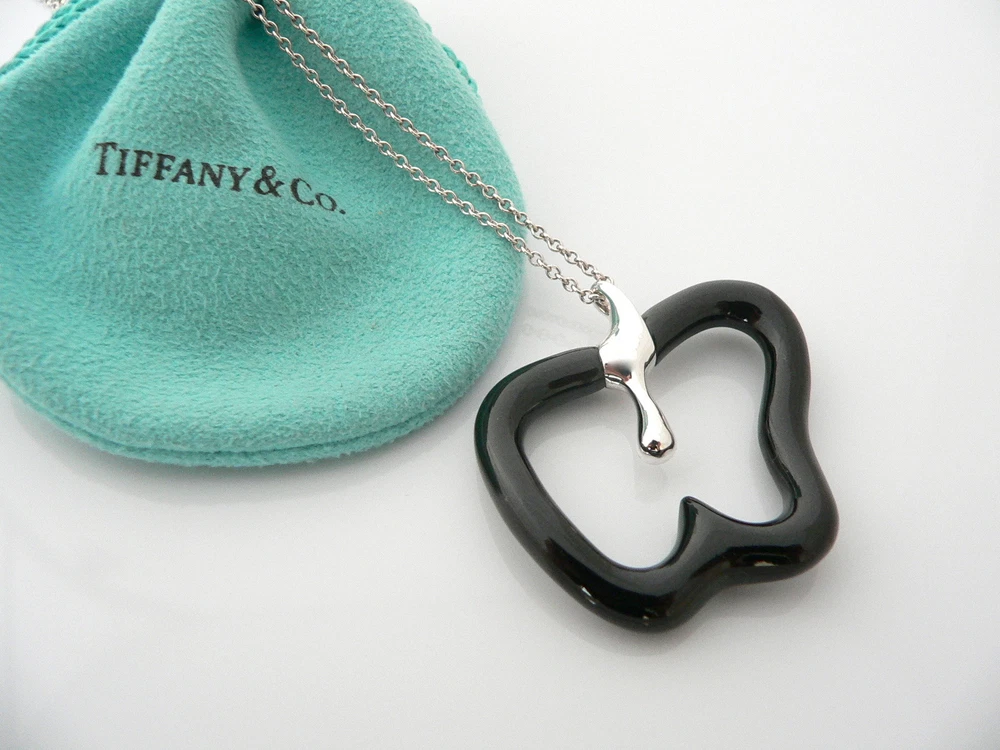 Time to show off your awesome Tiffany necklace! Offered for sale is a gorgeous, wonderful and just gorgeous Tiffany and Co. Peretti XL / Huge Black Jade Nature Apple necklace. Hanging from its gorgeous sterling silver Tiffany curb chain is a fabulous and striking Black Jade Apple pendant. Guaranteed to be a conversation starter! It is just like wearing a piece of art work right on your neck - without the extremely high price! Very elegant, chic and comfortable piece! You will feel both sexy and elegant while wearing this piece. Great necklace to wear for a night in town, at a party, or just going to dinner with friends in jeans or a pretty dress. The style is classic Tiffany, making it a piece that you will most certainly use over and over again. It is very comfortable to wear, and is in excellent / mint / new condition. A great Tiffany piece to start or add to your collection. The piece is fully hallmarked and is guaranteed to be 100% authentic. It will come with its Tiffany pouch as shown! Perfect and ready for gifting! Wonderful present for yourself or anyone you love! Will surely delight! Particulars: Size & Measurements: The necklace is 33.5 inches from end to end. The Black Jade Apple Charm is 1.55 inches wide. (Super cool piece!) Metal & Hallmarks: Tiffany & Co. / Peretti / 925 / China (on Charm) Tiffany & Co / Peretti / 925 / Spain (on Chain Clasp) Solid 925 sterling silver Please check out my other unique and interesting Tiffany items on sale.