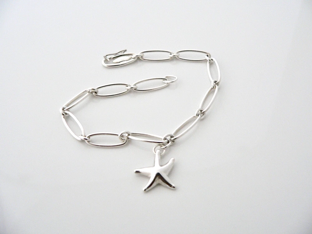 Overview: Offered for sale is a wonderful and gorgeous Tiffany & Co. Sterling Silver Starfish Link bracelet - in a rare, longer 8 inch length!. Definitely a Tiffany piece that you will get your money's value for. It works perfectly with pretty much any attire your put on, AND is an awesome statement piece. It is the perfect bracelet that fits a lifestyle on the go -- the piece can be worn to pretty much any occasion! It is simple, elegant, and classic all rolled into one. Imagine wearing the bracelet with your office attire... now imagine it with jeans or weekend wear ... Perfect anytime! It is a perfect Tiffany piece to start or add to your collection. As always, the item is hallmarked and is guaranteed to be 100% authentic. Wonderful present for yourself or anyone you love! Will surely delight! Particulars: Size & Measurements: The bracelet is 8 inches from end to end. Rare, hard to find length! Metal & Hallmarks: Tiffany & Co. / Elsa Peretti / 925 / Spain Solid 925 sterling silver Please check out my other unique and interesting Tiffany items on sale.