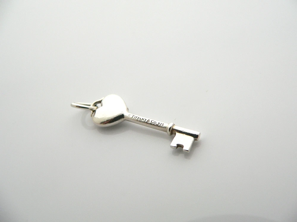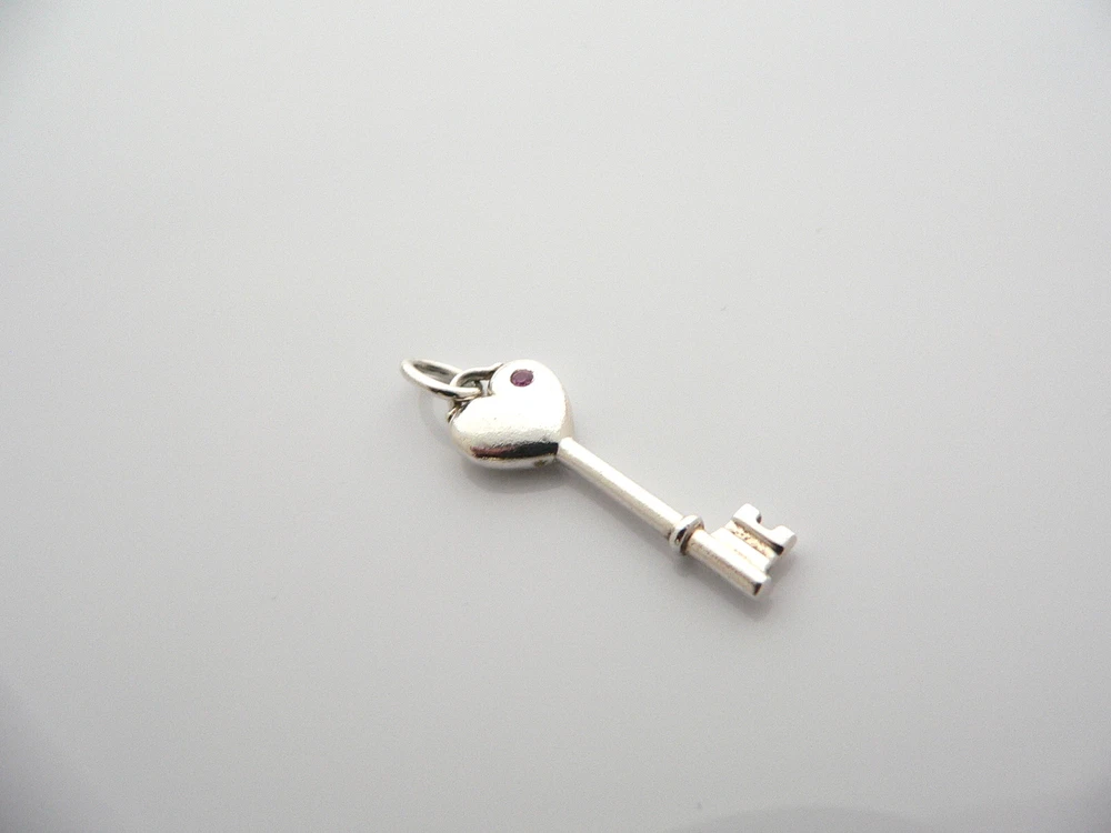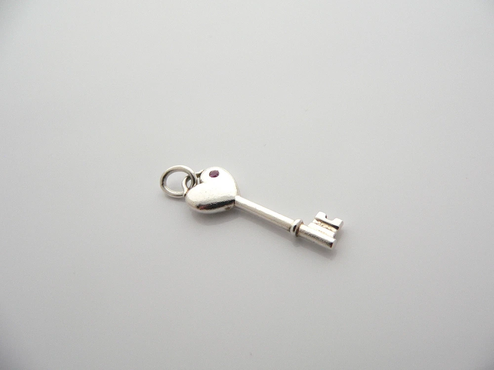 Overview: Offered for sale is a fantastic and very pretty Tiffany and Co. Sterling Silver Pink Sapphire Heart Key charm / pendant. Wonderful charm that fits a lifestyle on the go -- the piece can be worn to almost any occasion! Just add the Pink Sapphire Heart Key charm to an existing chain / silk cord / or bracelet and voila! Instant Tiffany style and elegance! :) It is classic Tiffany and yet looks extremely elegant. Perfect way to say "Here's the key to my heart :)" without ever having to say a word - believe me, she will know! :) Imagine the piece with your professional office attire ... Now imagine it with jeans or weekend wear ... Perfect in every way! The item is very comfortable to wear, and is in very good condition. A classic Tiffany piece to start or add to your collection. The pendant and is fully hallmarked and guaranteed to be 100% authentic. Wonderful present for yourself or anyone you love! Will surely delight! Particulars: Size & Measurements: The key pendant is 1.25 inches (including bail). Metal & Hallmarks: Tiffany & Co. / 925 Solid 925 sterling silver Please check out my other unique and interesting Tiffany items on sale.