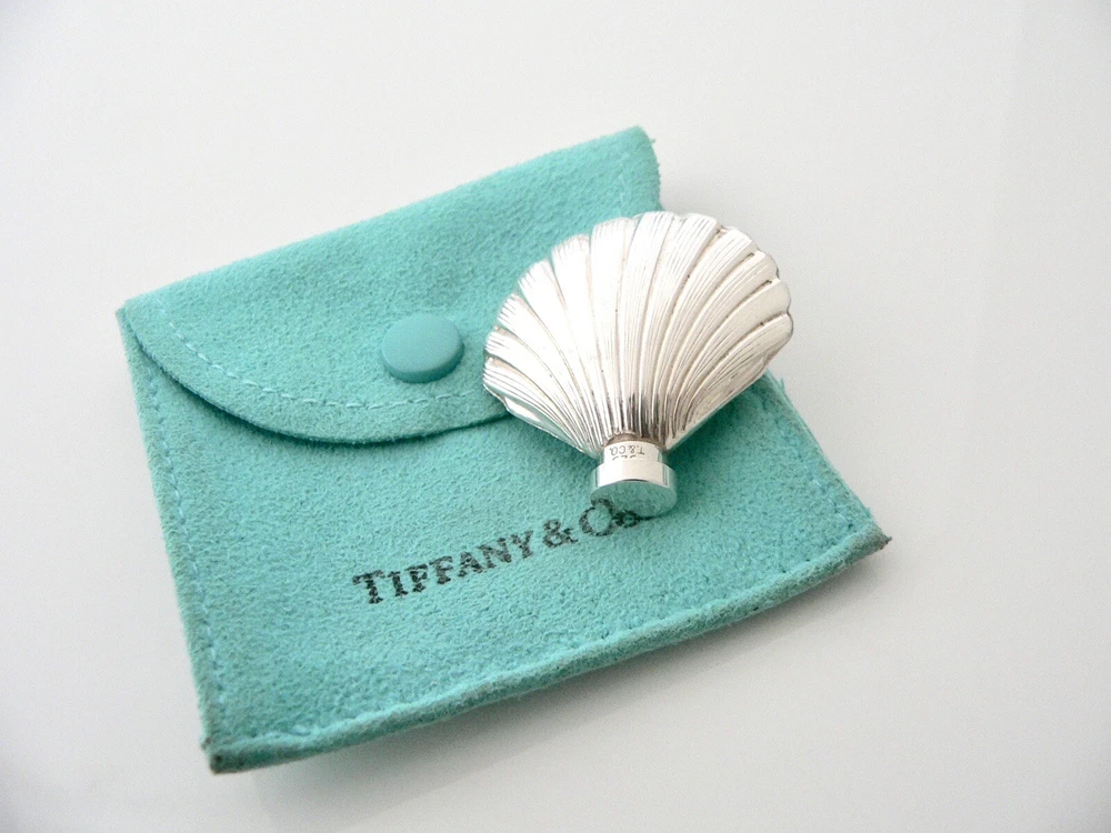 Tiffany & Co Silver Shell Perfume Bottle Dabber Case Gift Pouch Ocean Sea Lover