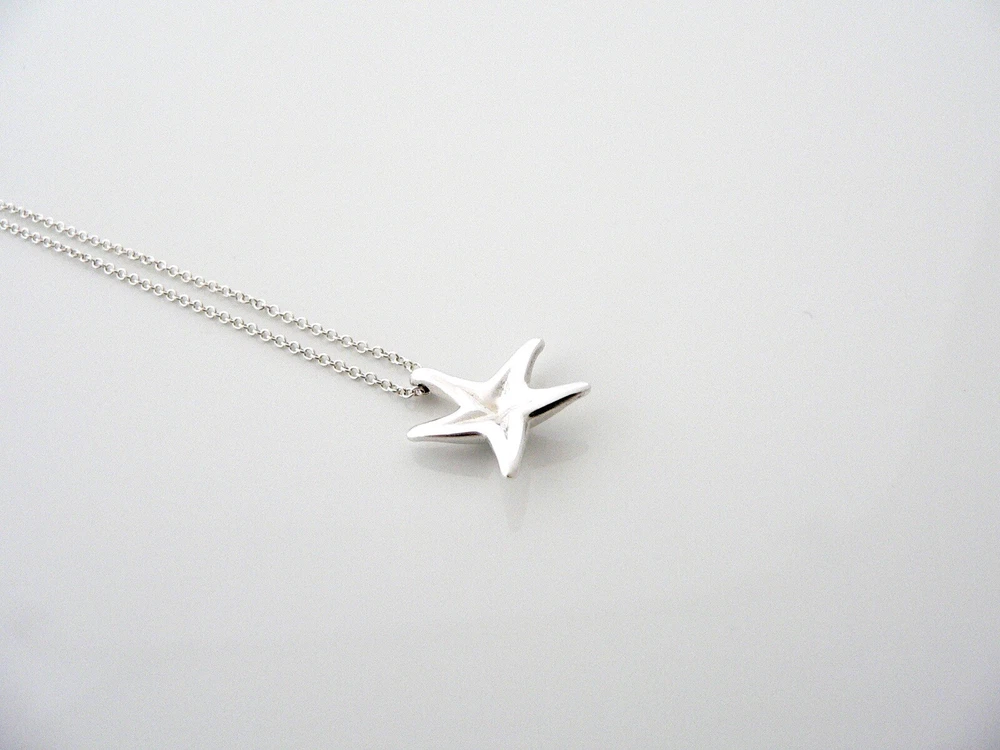 Overview: Offered for sale is a wonderful Tiffany classic. Whether you are just starting your Tiffany collection or are thinking of adding another piece, this one is perfect for you. Elsa Peretti’s Starfish necklace is a Tiffany classic that will never go out of style. It will most certainly be a piece that you will turn to over and over again, so it is great value for your money! It is a wonderful necklace that fits a lifestyle on the go -- the necklace can be worn to almost any occasion! It is simple, elegant, and classic all rolled into one necklace. Imagine the piece with your professional office attire ... Now imagine it with jeans or weekend wear ... Perfect! The item is very comfortable to wear, and is in excellent condition. As always, the item is fully hallmarked and guaranteed to be 100% authentic. Wonderful present for yourself or anyone you love! Will surely delight! Particulars: Size & Measurements: The chain is 16.5 inches from end to end. Metal & Hallmarks: Tiffany & Co. / 925 / Elsa Peretti / Spain Solid 925 sterling silver Please check out my other unique and interesting Tiffany items on sale.