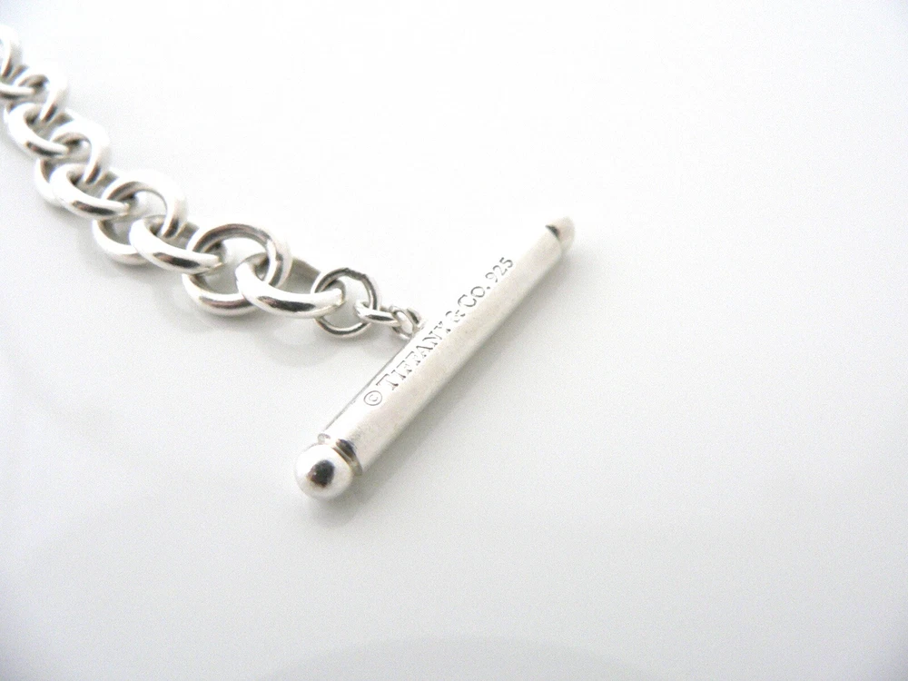 Offered for sale is a wonderful and gorgeous Tiffany & Co. Sterling Silver Toggle bracelet. Definitely a Tiffany piece that you will get your money's value for. It works perfectly with pretty much any attire your put on, AND is an awesome statement piece. Looks great worn alone, stacked with other bracelets, or you can add your own charms to personalize the piece! Classic Tiffany statement piece! It is the perfect necklace that fits a lifestyle on the go -- the piece can be worn to pretty much any occasion! It is simple, elegant, and classic all rolled into one. Imagine wearing the bracelet with your office attire... now imagine it with jeans or weekend wear ... Perfect anytime! It is a perfect Tiffany piece to start or add to your collection. As always, the item is hallmarked and is guaranteed to be 100% authentic. Wonderful present for yourself or anyone you love! Will surely delight! Particulars: Size & Measurements: The bracelet is approx. 7.5 inches. Metal & Hallmarks: Tiffany & Co. / 925 Solid 925 Sterling Silver Please check out my other unique and interesting Tiffany items on sale.