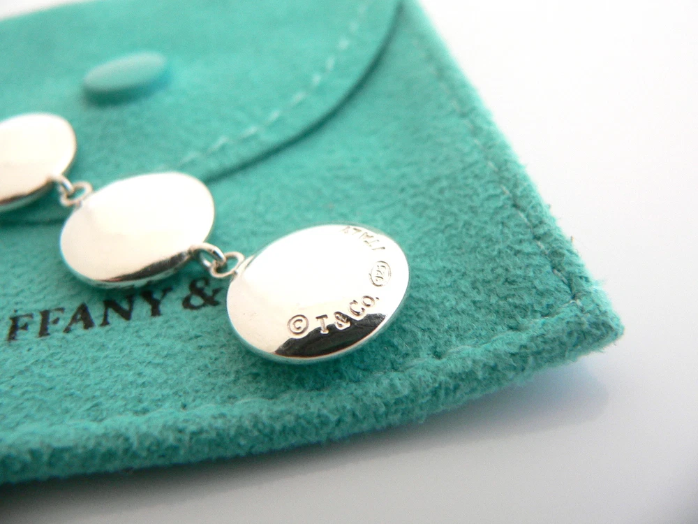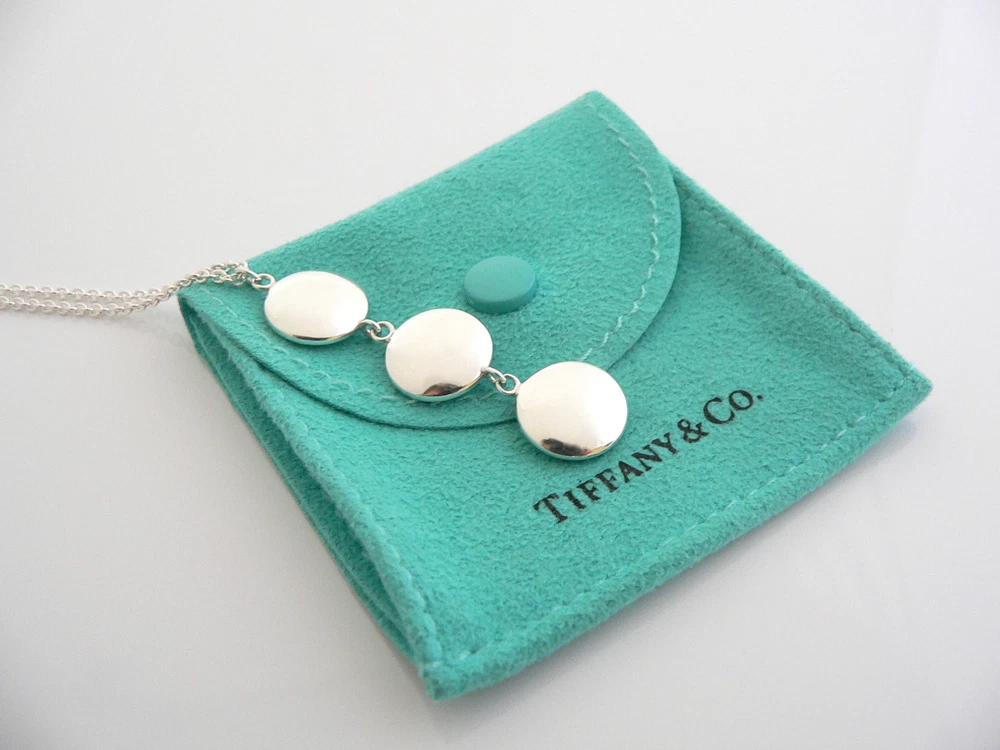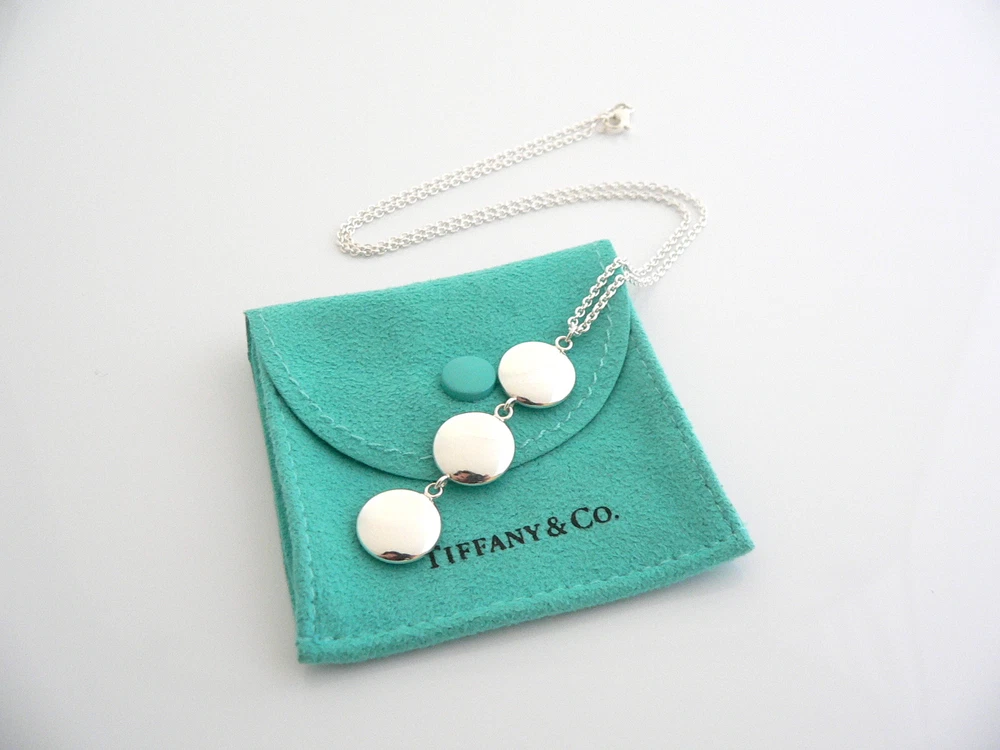 Overview: Offered for sale is a wonderful Tiffany classic. Whether you are just starting your Tiffany collection or are thinking of adding another piece, this one is a perfect for you. Tiffany & Co.'s Sterling Silver Triple Disc Dangling necklace is a Tiffany classic that will never go out of style. The piece makes a statement in its own subtle/simple way. Looks great with an open neck shirt or a dark turtleneck come winter time! (Not sure I want to think of this too much :)) It will most certainly be a piece that you will turn to over and over again, making it great value for your money. It is a wonderful necklace that fits a lifestyle on the go -- the necklace can be worn to almost any occasion! It is simple, elegant, and classic all rolled into one necklace. Imagine the piece with your professional office attire ... Now imagine it with jeans or weekend wear ... Very cool in every way! Looks just like a piece of modern art hanging from your neck - without the huge price tag of an art piece :) The item is very comfortable to wear, and is in excellent condition. As always, the item is fully hallmarked and guaranteed to be 100% authentic. It will come with its Tiffany pouch as shown! Perfect and ready for gifting! Wonderful present for yourself or anyone you love! Will surely delight! Particulars: Size & Measurements: The chain is 16.25 inches from end to end. The dangling circle drop pendant is approx 1.5 inches. Metal & Hallmarks: T & Co. / 925 / Italy Solid 925 sterling silver Please check out my other unique and interesting Tiffany items on sale.