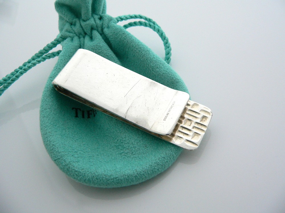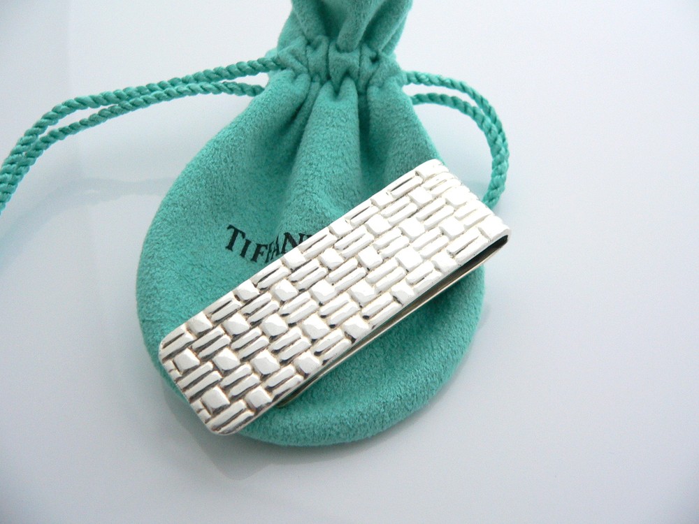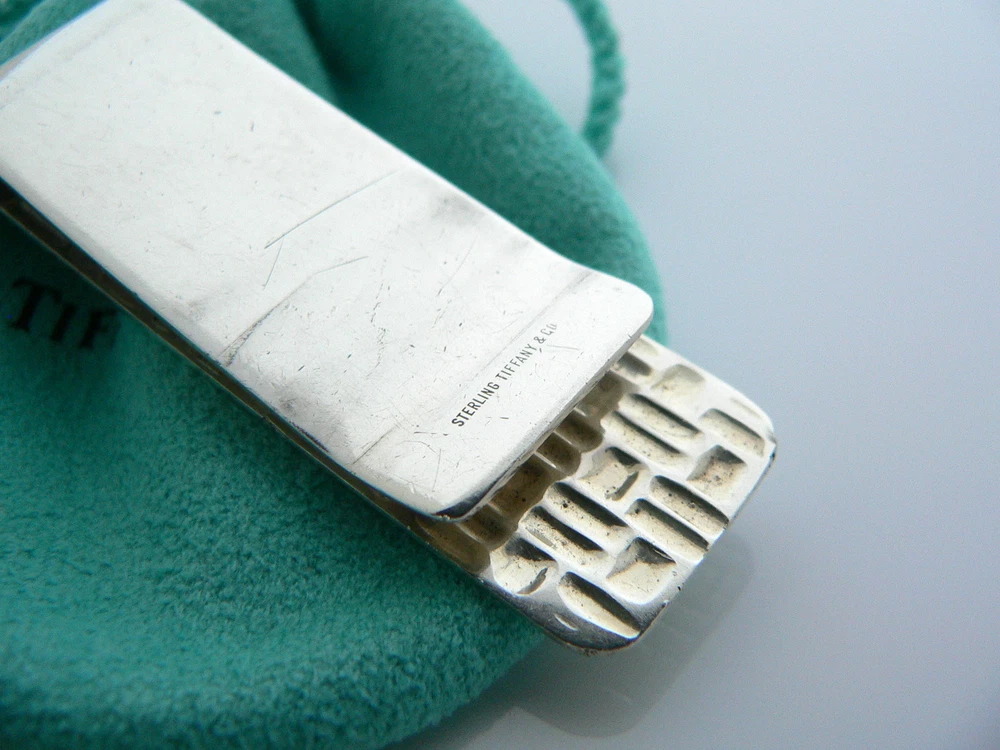 Overview: Offered for sale is a rare and unique Tiffany and Co. Sterling Silver Weave Money Clip. Very cool, retro piece that is sure to be a conversation starter! The money clip is pre-owned. It will certainly be something that will be used on a daily basis. The clip is no longer in production, making it a great piece for the collector. Perfect surprise for that someone special! The piece is fully hallmarked and is guaranteed to be 100% authentic. Wonderful present for yourself or anyone you love! Will surely delight! Particulars: Weight: 22.2 grams Metal & Hallmarks: Tiffany & Co. / Sterling Solid 925 sterling silver Please check out my other unique and interesting Tiffany items on sale.