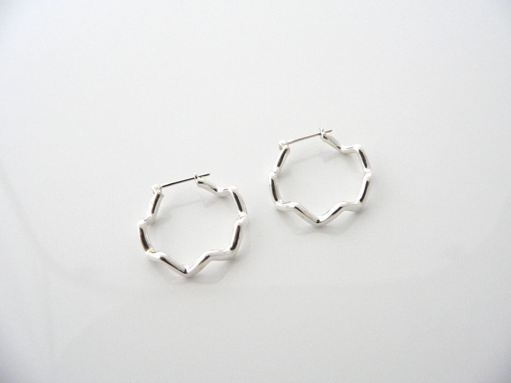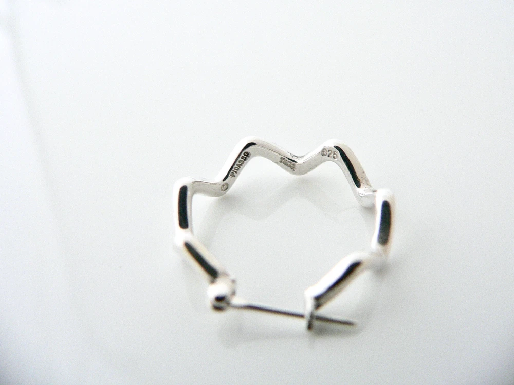 Overview: Looking for a pair of earrings that is elegant, classic and yet makes a great statement? Well, look no further - you just stumbled upon it right here on Ebay! :) Offered for sale is a gorgeous and rare Tiffany & Co Sterling Silver Zig Zag Hoop earrings. Made from solid and bright Tiffany silver, yet maintains its delicate and feminine feel! Looks and feels wonderful on your ears. I am 100% positive that you will want to use yours over and over again as well. Your friends will be fascinated by this gorgeous piece – it is almost like a work of art! The look of the piece is simple, classic, and very elegant. The pair works with pretty much anything you put on … and adds a touch of "Tiffany" style and pizazz to it! They are in great condition! A perfect and rare Tiffany piece to start or add to your collection. The earrings are fully hallmarked and guaranteed to be 100% authentic. Wonderful present for yourself or anyone you love! Will surely delight! Particulars: Size & Measurements: The hoops are approx. 0.9 inches in diameter. Metal & Hallmarks: T & Co. / Picasso / 925 Solid 925 sterling silver Please check out my other unique and interesting Tiffany items on sale.