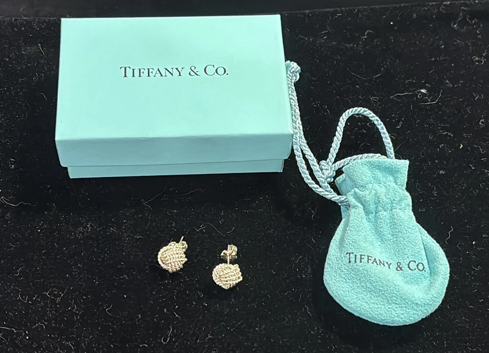 Offering a beautiful pair of signed Tiffany and Co sterling silver earrings Love Knot stud earrings. They are in great condition and have their original box and bag. Thank you for your interest.