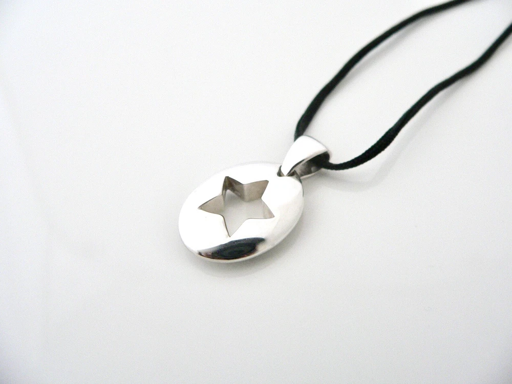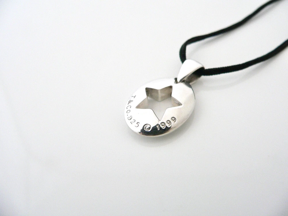 Overview: Offered for sale is a wonderful Tiffany classic. Whether you are just starting your Tiffany collection or are thinking of adding another piece, this one is perfect for you. This Star Stencil on an 18 Inch Silk Cord is a Tiffany classic that will never go out of style. The piece makes a "Tiffany" statement in its own subtle/simple way. It will most certainly be a piece that you will turn to over and over again, making it great value for your money. It is a wonderful necklace that fits a lifestyle on the go -- the piece can be worn to almost any occasion! It is simple, elegant, and classic all rolled into one. Imagine the piece with your professional office attire ... Now imagine it with jeans or weekend wear ... Very cool in every way! As always, the item is fully hallmarked and guaranteed to be 100% authentic. Wonderful present for yourself or anyone you love! Will surely delight! Particulars: Size & Measurements: The necklace is approx. 18 inches from end to end. Metal & Hallmarks: T & Co. / 925 Solid 925 sterling silver Please check out my other unique and interesting Tiffany items on sale.