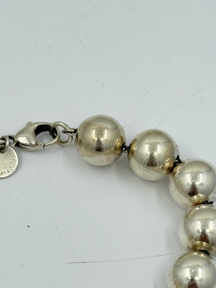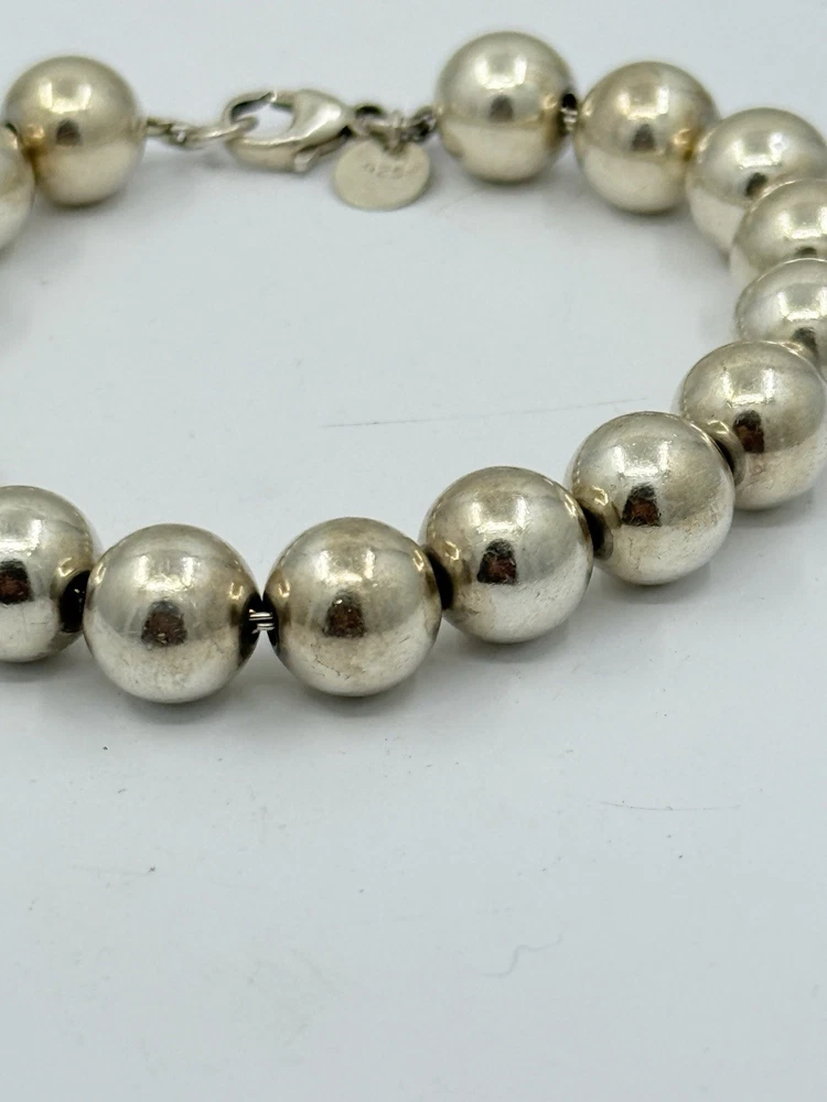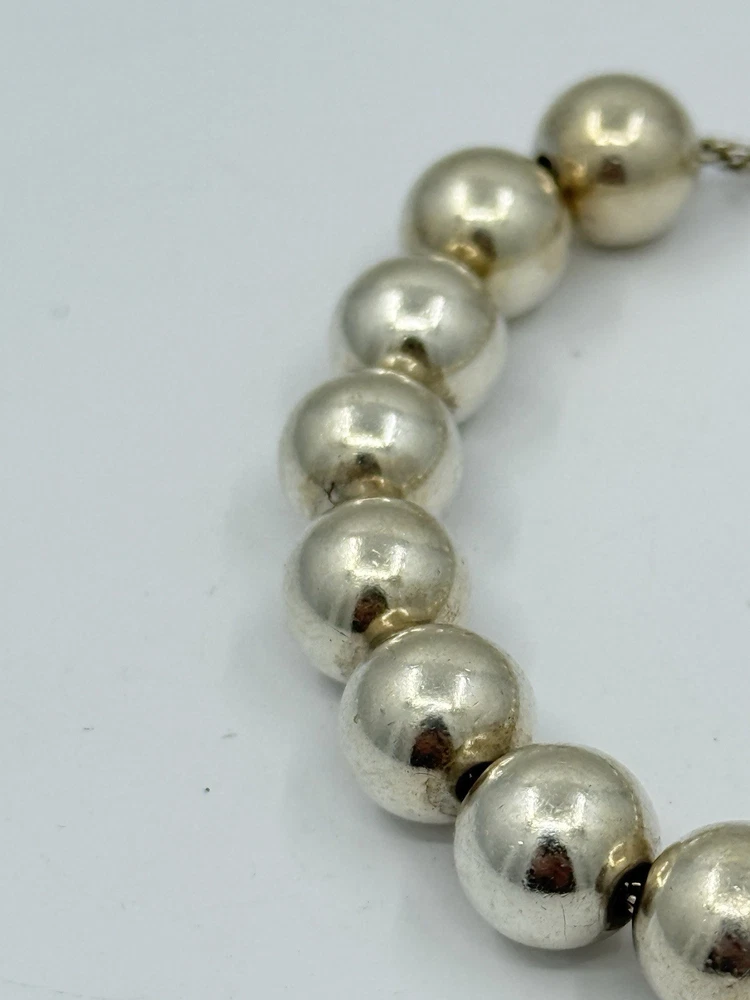 Authentic Tiffany & Co Sterling Silver Ball Bead Bracelet 18g 10mm It measures approximately 7.5” long and approximately 6-3/8” inside.