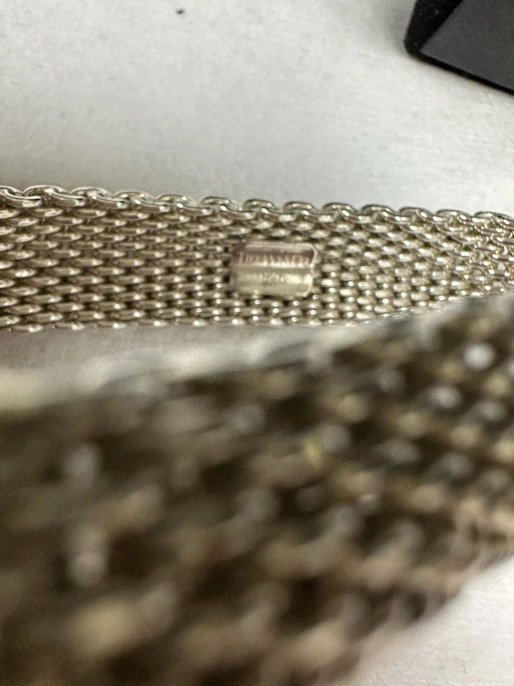 GORGEOUS TIFFANY & CO. STERLING SOMERSET MESH BRACELET IN EXCELLENT PREOWNED CONDITION. IT MEASURES APPROXIMATELY 7.25” ON THE INSIDE AND IS 15MM WIDE. I DON’T SEE ANY ISSUES WITH THIS PIECE. PLEASE VIEW ALL PHOTOS.