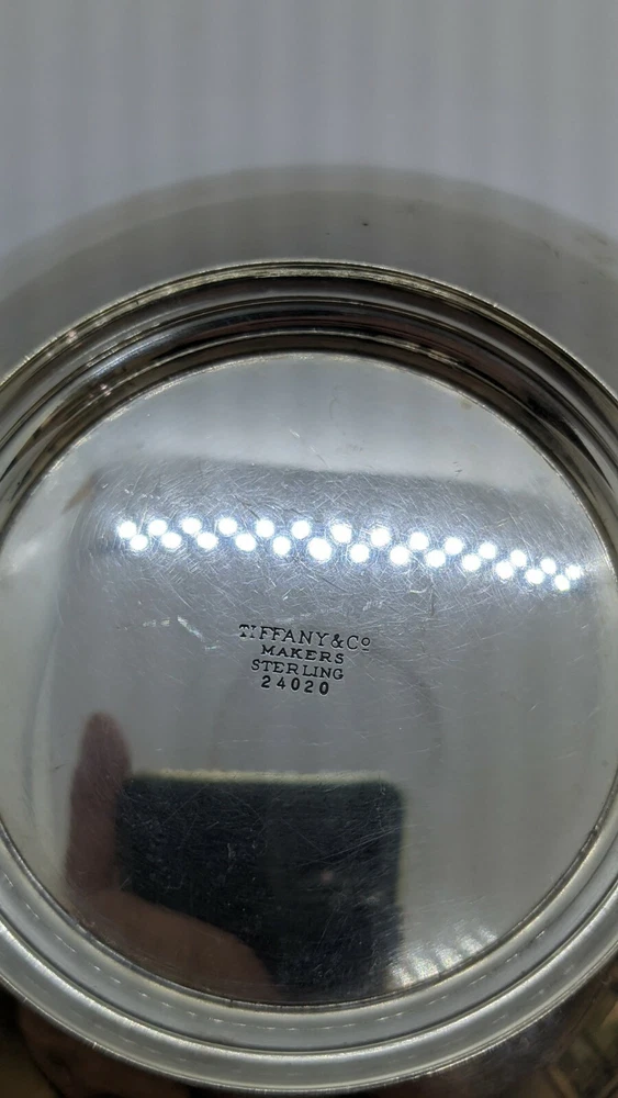 Welcome to my e B a y Store Tiffany & Co. Sterling Silver Bowl / Dish Makers 24020 Total Weight - 5.03 Ozt Dimensions - 5" Wide Great Condition & Well Kept ** Engraving Inside Bowl *** Sold As IS Bid With Confidence Feel Free to ask any questions before bidding please If you would like additional pictures please send me a message Check out my other listings for more great deals! 100% Authentic or your Money Back Guarantee!! Free Shipping on All Items!