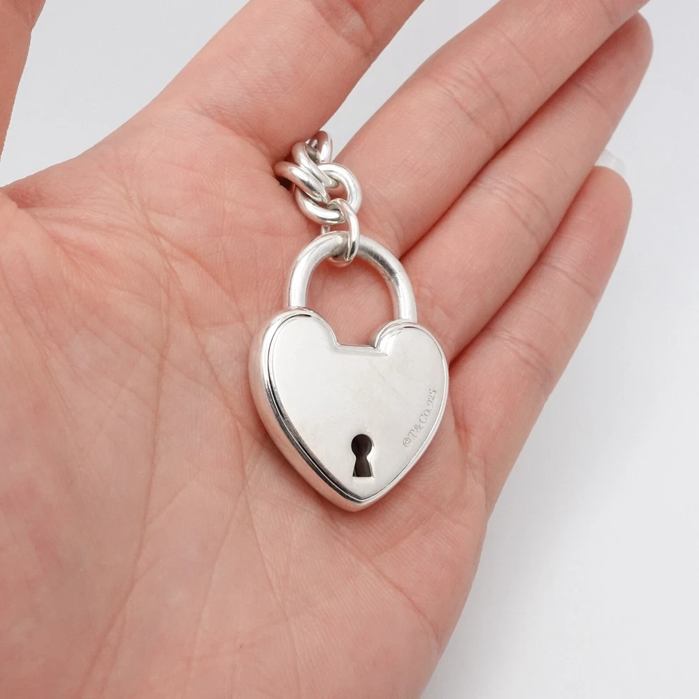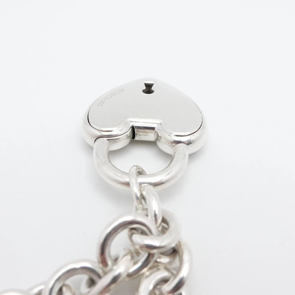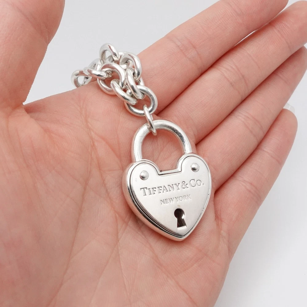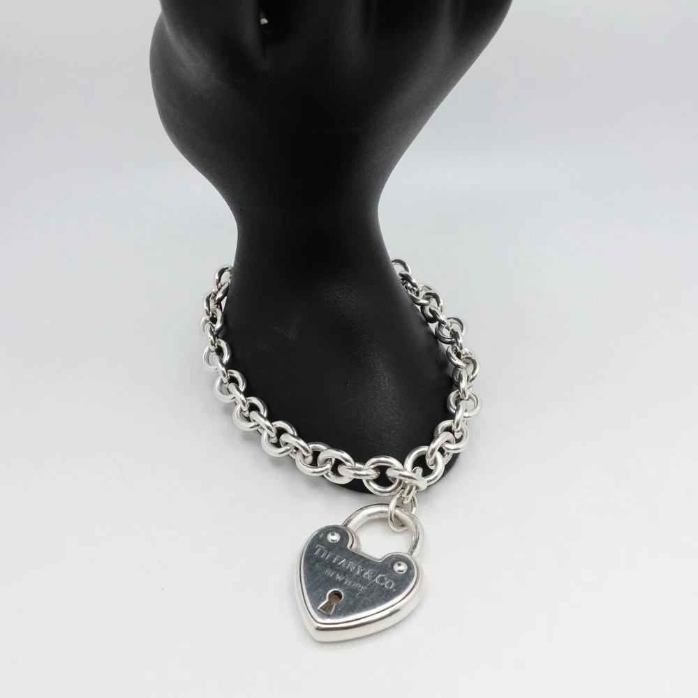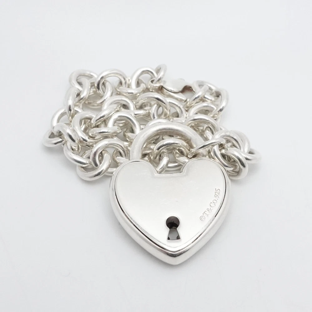 Welcome to my e B a y Store Tiffany & Co. Sterling Silver Large Heart Padlock Chain Bracelet Size - 9" Long Fits up to Relax 8" - 8.25" Snug Fit Chain Width - 8mm Charm Height - 1.33" Charm Width - 1" approx. Charm Depth - 5.5mm Thick Total Weight - 44.7 Grams Hallmark - T&Co. .925 **Padlock doe not open** Very Great & Professionally Polished Pouch Included Bid With Confidence Feel Free to ask any questions before bidding please If you would like additional pictures please send me a message Check out my other listings for more great deals! 100% Authentic or your Money Back Guarantee!! Free Shipping on All Items!