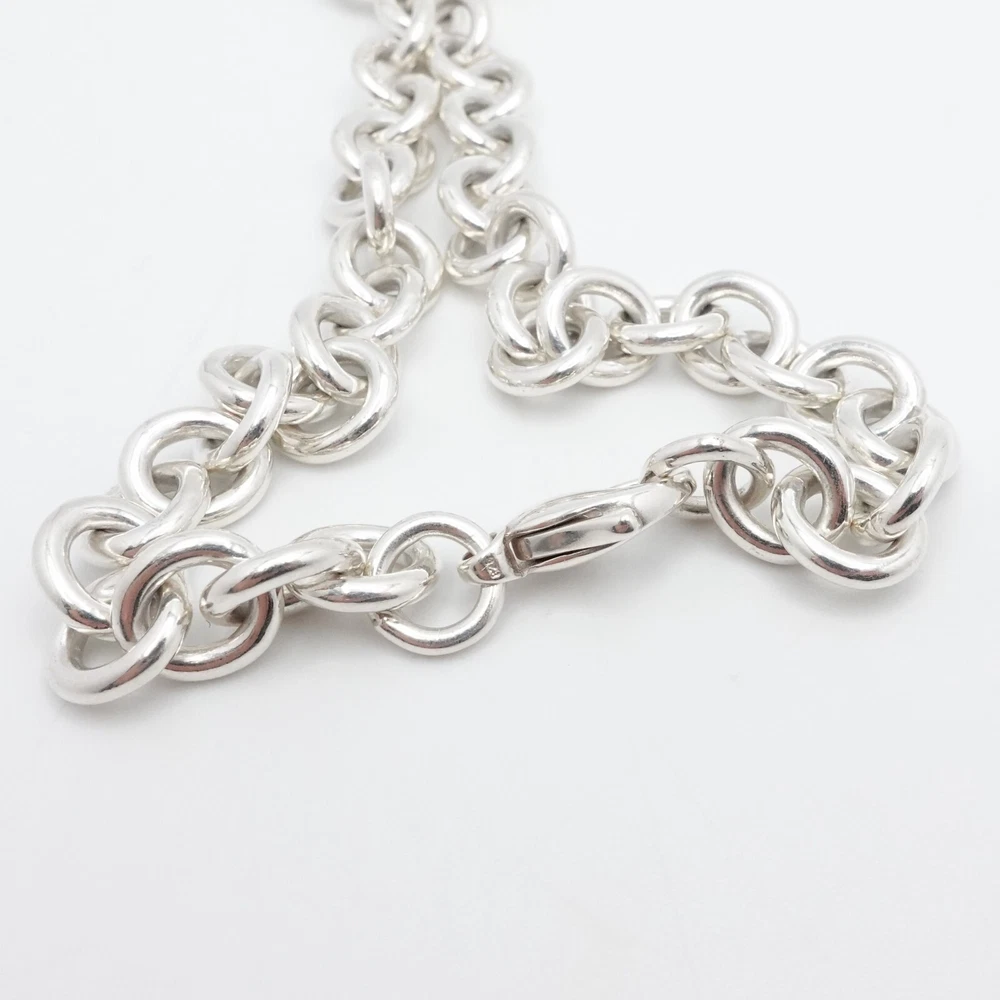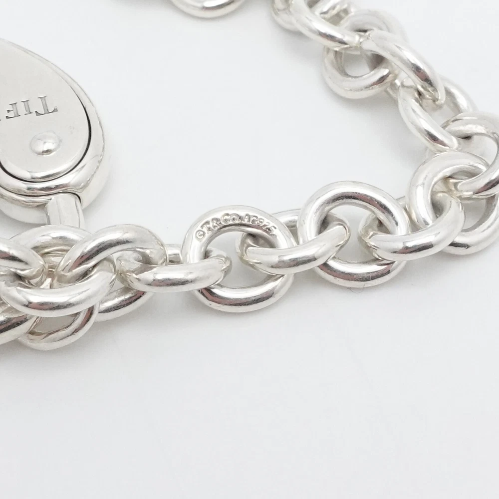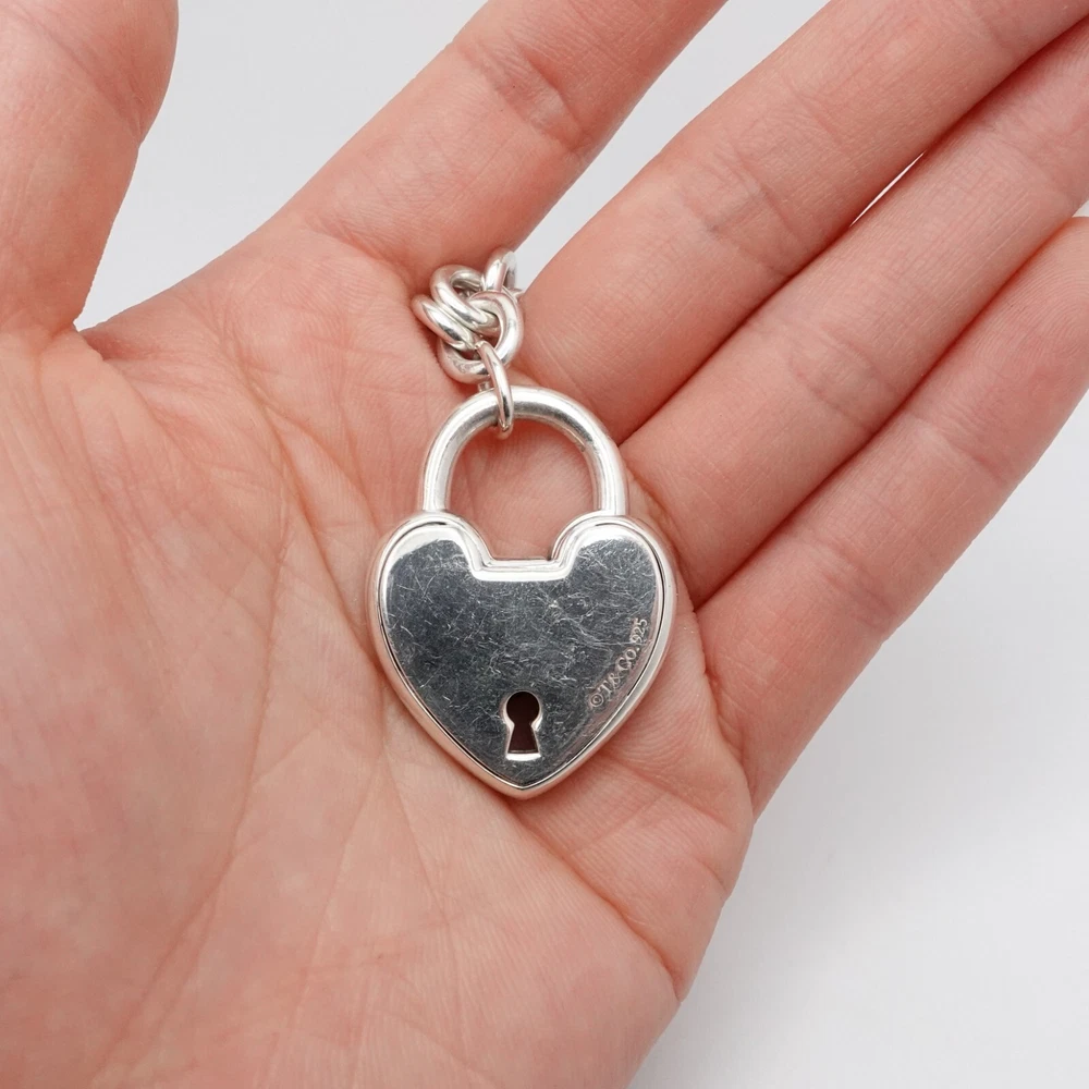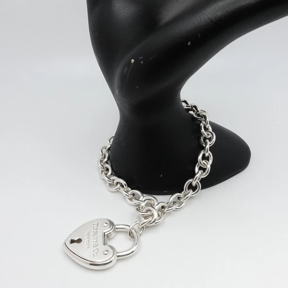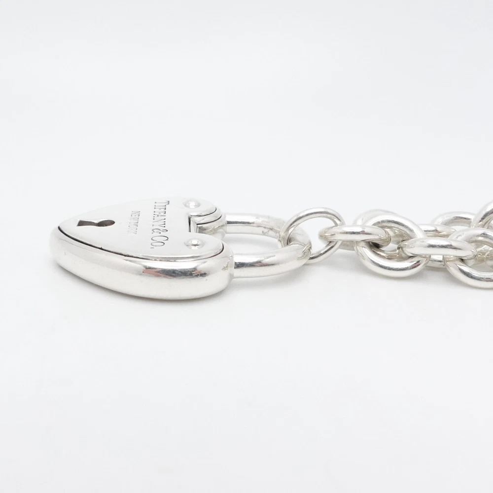 Welcome to my e B a y Store Tiffany & Co. Sterling Silver Large Heart Padlock Chain Bracelet Size - 9" Long Fits up to Relax 8" - 8.25" Snug Fit Chain Width - 8mm Charm Height - 1.33" Charm Width - 1" approx. Charm Depth - 5.5mm Thick Total Weight - 44.7 Grams Hallmark - T&Co. .925 **Padlock doe not open** Very Great & Professionally Polished Pouch Included Bid With Confidence Feel Free to ask any questions before bidding please If you would like additional pictures please send me a message Check out my other listings for more great deals! 100% Authentic or your Money Back Guarantee!! Free Shipping on All Items!