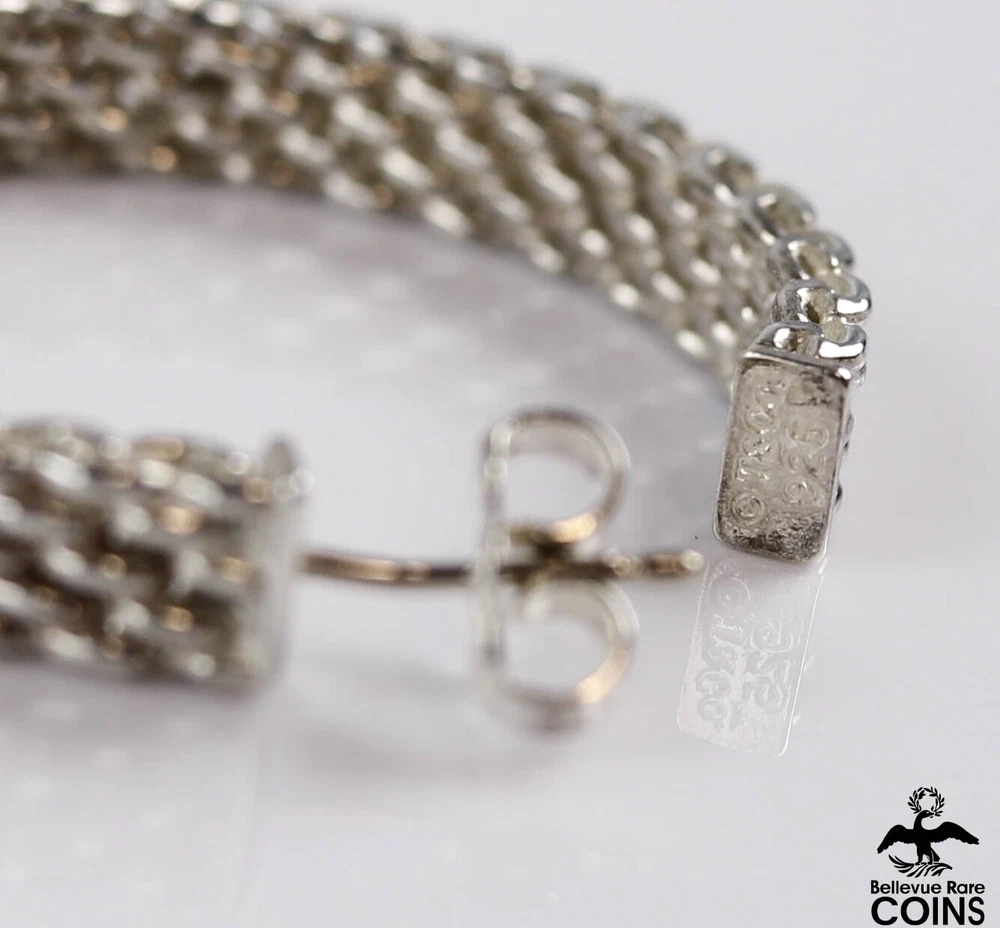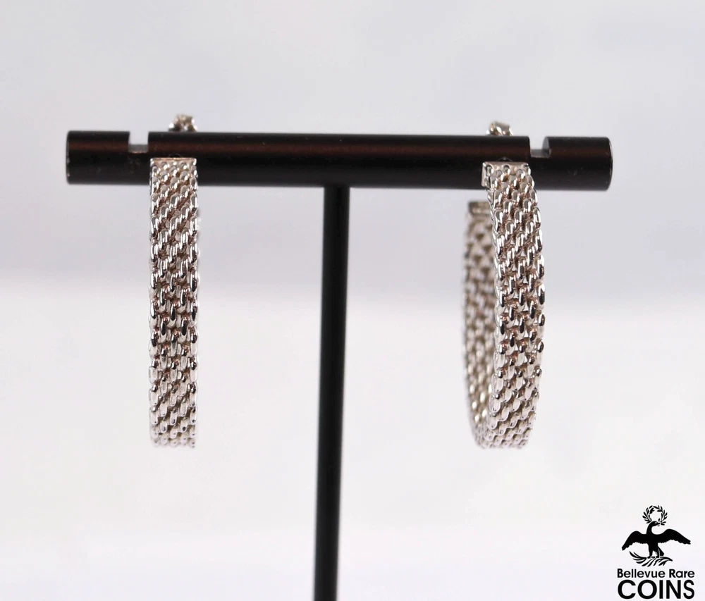 Tiffany & Co. Sterling Silver Mesh Weave Large Hoop Earrings w/Pouch Tiffany & Co. Sterling Silver Mesh Weave Large Hoop Earrings w/Pouch *Tiffany & Company is a worldwide name and elite jewelry company that spans almost 200 years old, with many artist and designer pieces that are sure to stun and captivate. Luxury and style are captured in every piece! *Specifications: Metal: Sterling .925 Silver Total Weight: 11.7 grams Length x Width: 32mm x 5mm (each earring) *Please SEE PHOTOS for condition. If you should have any questions or concerns, please feel free to message us Monday - Friday 9:00am - 5:00pm via ebay’s “Ask question” button below. We add hundreds of new coin and bullion listings weekly. We encourage you to check out our other listings and our eBay auctions! Click Here To See All Bellevue Rare Coins Gold Bullion L istings Shipping & Returns: $4.00 USPS Ground Advantage shipping within the United States, unless otherwise noted in listing. Shipping and Handling: Domestic Shipments - Bellevue Rare Coins provides $4.00 United States Postal Service (USPS) Ground Advantage shipping with tracking for all shipments within the United States, unless otherwise specified. International Shipments - All International orders are shipped via eBay's International shipping program. International Shipping and handling fees will be determined at check out. Please contact us for shipment fee estimates. Combined Shipping - Bellevue Rare Coins offers combined shipping for domestic buyers who have won multiple auctions. We will send out updated invoices with discounted shipping costs on Monday mornings. Please wait until you receive the updated invoice from us to make your payment. We do not offer combined shipping for International Buyers. Return Policy - Bellevue Rare Coins has a 30-calendar day return policy. All returns must be shipped within 30 calendar days of receiving the product. All returned items must be in their original packaging. All return requests must be made within 30 calendar days of customer receiving the merchandise. When returning merchandise, please include the item number, as this will expedite the refund process. Bullion Returns - Customer may (at Bellevue Rare Coins' discretion) be required to pay for any market loss on their returns. Any market gain on refunds shall remain the property of Bellevue Rare Coins. Listing Information: Product Photography - Bellevue Rare Coins does not use stock photos. Items in our listings have been photographed by our team in-house, so you can trust that you're making an informed purchase, ensuring transparency and authenticity. Messages - We greatly value your messages and are committed to responding to your questions and inquiries as promptly as we can. Nevertheless, please understand that immediate responses may not always be possible. Kindly note that we are unable to respond to messages on weekends, but we assure you that your inquiries are important to us, and we will get back to you during our working hours as soon as possible. About Bellevue Rare Coins Bellevue Rare Coins is a family-owned and operated business who have been proudly offering their services since 1979. We are the leading rare coin and currency dealer in the Greater Seattle Area who also specialize in jewelry and estate items. We are focused on delivering a simpler experience to our customers. Providing a reputation that dramatically affects our consumers in a positive way. We ensure that our clients always feel welcome and valued.