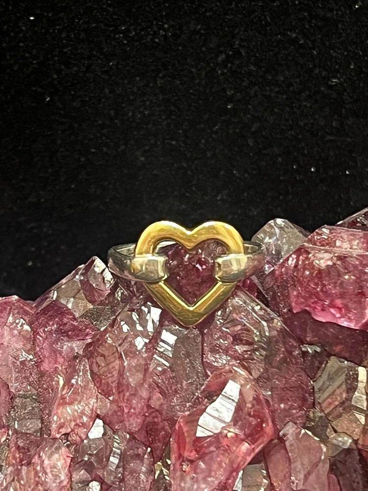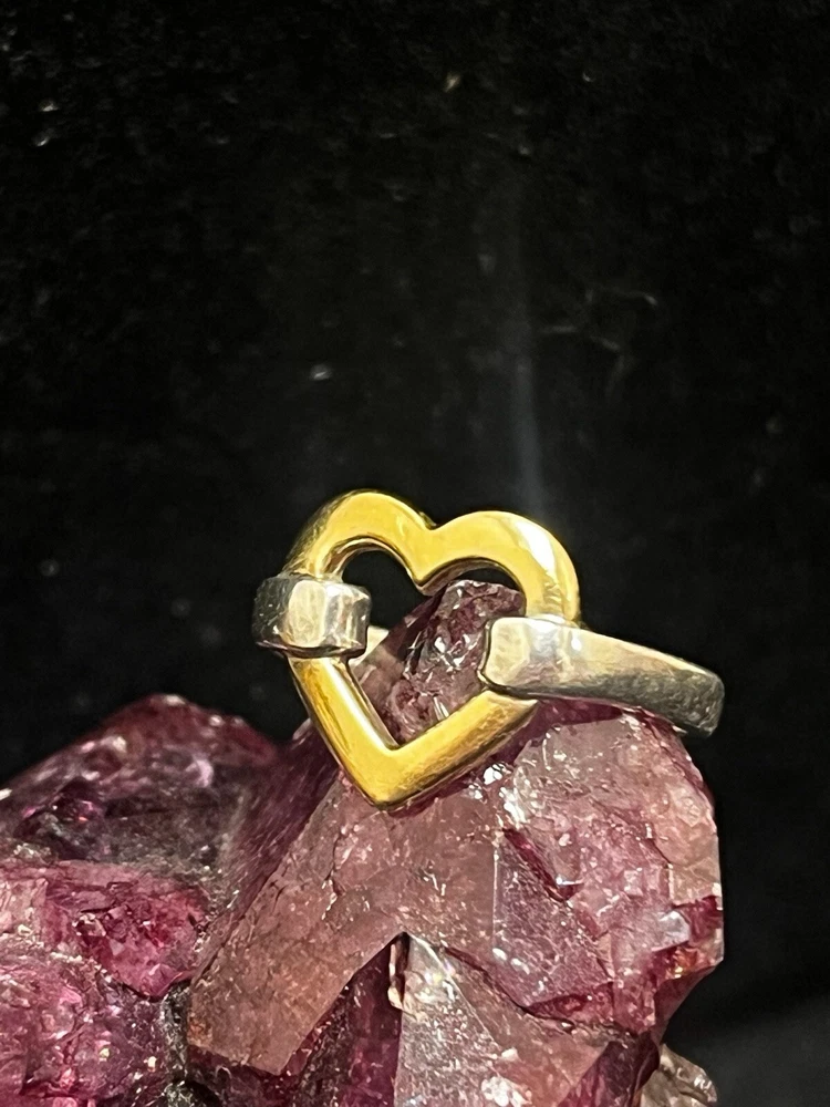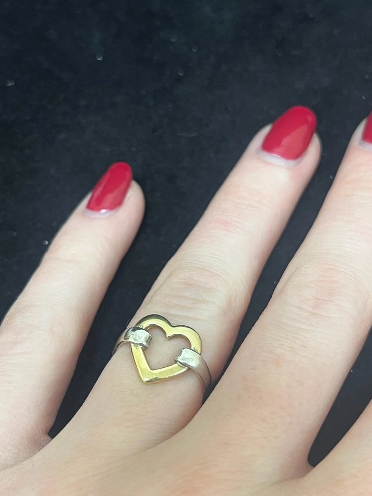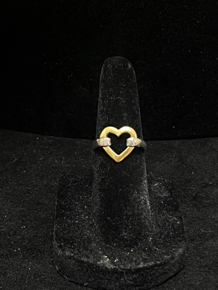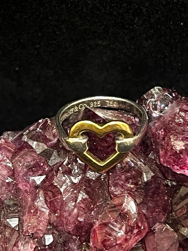 TIFFANY STERLING AND 18K YELLOW GOLD OPEN HEART RING IN VERY GOOD PREOWNED CONDITION WITH LIGHT WEAR ON THE BAND. THIS BEAUTY IS READY TO WEAR! PLEASE VIEW ALL PHOTOS.