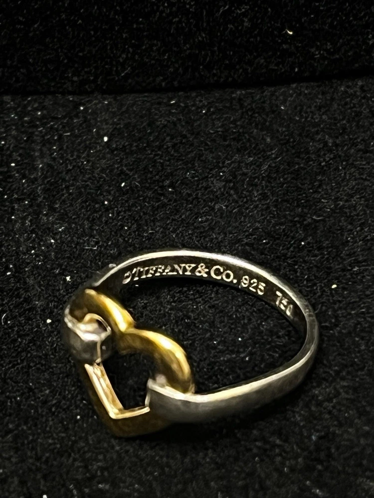 Color: YELLOW AND SILVER Type: Rings Collection: Tiffany & Co. Hearts Ring Size: 4 Main Stone Color: NO STONE Brand: Tiffany & Co. Metal: Yellow Gold Style: N/A Occasion: ANY Base Metal: STERLING SILVER AND YELLOW GOLD Main Stone: No Stone Shape: Heart Department: Women Signed: Yes Material: PRECIOUS METALS Metal Purity: 18 karat Theme: HEARTS, LOVE, BEAUTY, DESIGNER