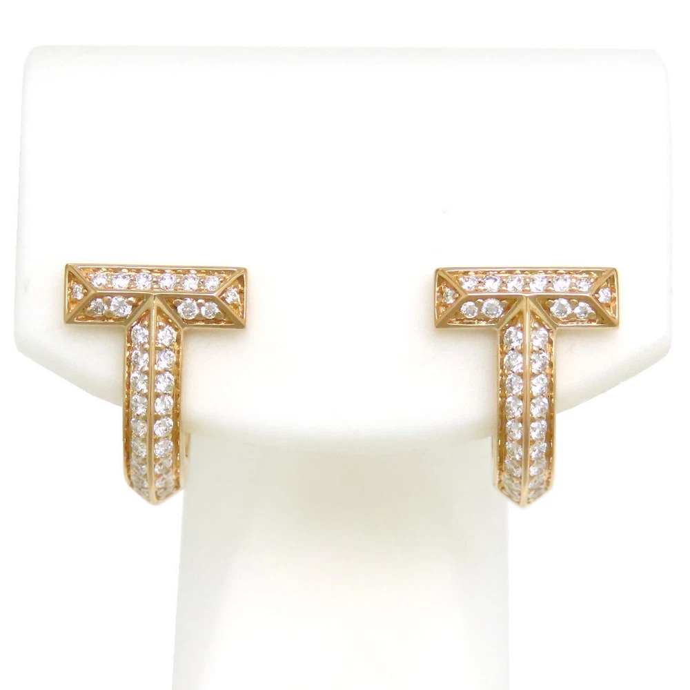 Tiffany & Co. T-One Half Diamond Huggie Au750 K18PG Earrings 717611