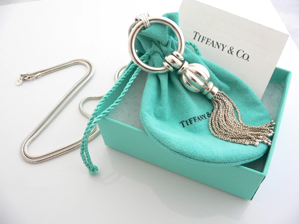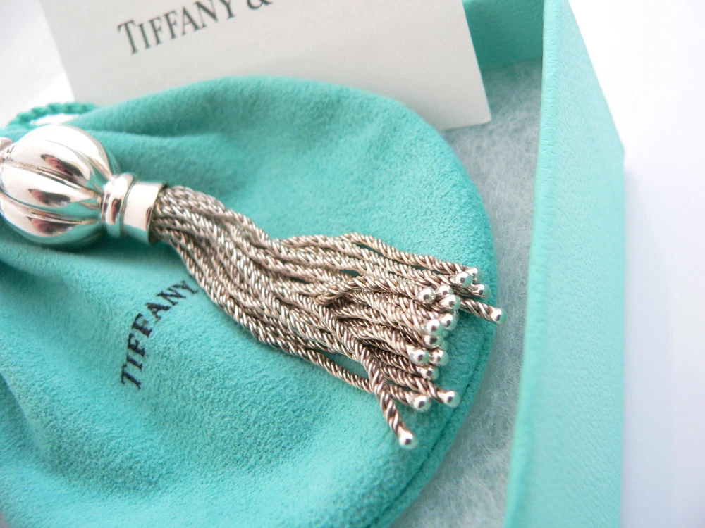 Overview: Everyone needs a signature Tiffany piece! Whether you are just starting your Tiffany collection or are thinking of adding another piece, this one is a perfect for you. Tiffany & Co.'s Silver 32 Inch Long Tassel Dangling necklace is a Tiffany classic that will never go out of style. The piece makes a statement in its own subtle/simple way. It will most certainly be a piece that you will turn to over and over again, making it great value for your money. It is a wonderful piece that fits a lifestyle on the go -- can be worn to almost any occasion! It is gorgeous, elegant, and classic all rolled into one ... adding just the right amount of "Tiffany touch" to any outfit. Imagine the piece with your professional office attire ... Now imagine it with jeans or weekend wear ... Very cool in every way! The item is very comfortable to wear, and is in excellent condition. As always, the necklace is fully hallmarked guaranteed to be 100% authentic. It will come with its Tiffany pouch, box, and sterling care card as shown! Perfect and ready for gifting! Wonderful present for yourself or anyone you love! Will surely delight! Particulars: Size & Measurements: The Snake chain is 32 inches from end to end. The Tassel pendant is approx. 4.5 inches long. Metal & Hallmarks: T & Co / 925 / Italy (on the gorgeous Tassel pendant) Tiffany & Co. / 925 (on circular tag of chain) Solid 925 Sterling Silver Please check out my other unique and interesting Tiffany items on sale.