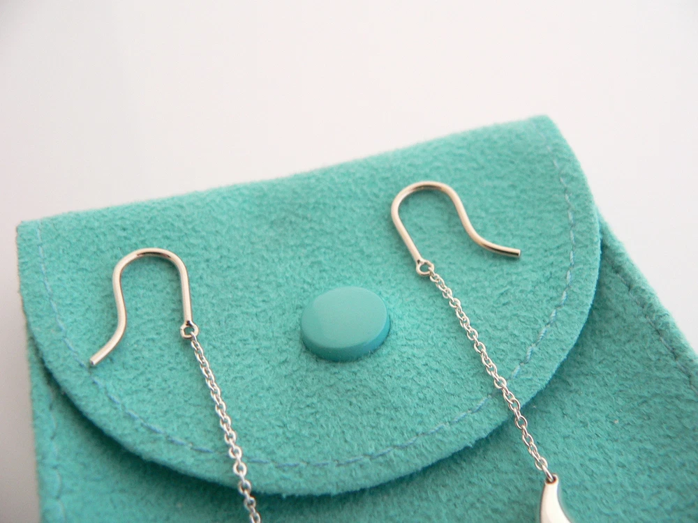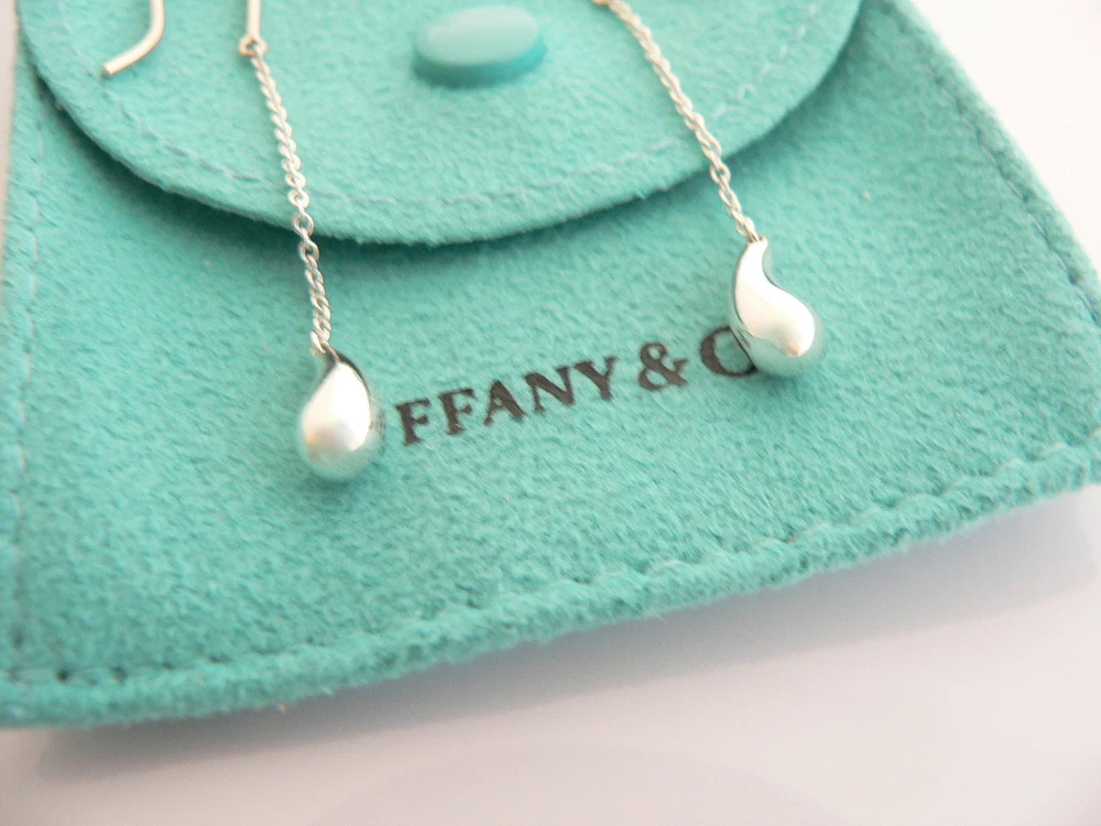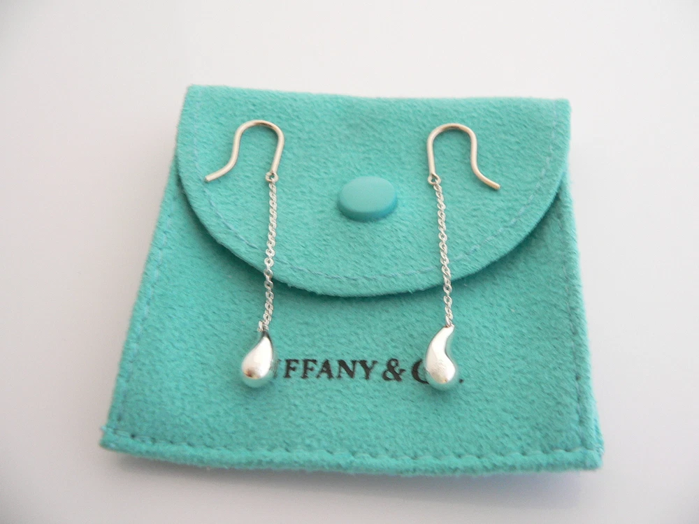 Overview: Time to pull your hair back and show off your fantastic earrings! Here is an awesome pair of Tiffany earrings that you will never want to take off! Offered for sale is a gorgeous Tiffany & Co.'s Elsa Peretti Silver Dangling Teardrop earrings. The piece is crafted from bright and substantial Tiffany silver. Dangling from the earrings is a very pretty teardrop - super classic and elegant look! It is a wonderful pair of earrings that fits a lifestyle on the go -- the pair can be worn to almost any occasion! It is simple, elegant, and classic all rolled into one. Imagine the piece with your professional office attire ... Now imagine it with jeans or weekend wear ... Perfect! It will be the only pair of earrings you need when traveling as it is super versatile! It is a classic Tiffany piece to start or add to your collection. No longer in production, it is perfect for the collector. The item is fully hallmarked and guaranteed to be 100% authentic. It will come with its Tiffany pouch as shown! Ready for gifting! Wonderful present for yourself or anyone you love! Will surely delight! Particulars: Size & Measurements: The earrings dangle approx. 1.9 inches. Metal & Hallmarks: T & Co. / Peretti / 925 Solid 925 sterling silver Please check out my other unique and interesting Tiffany items on sale.