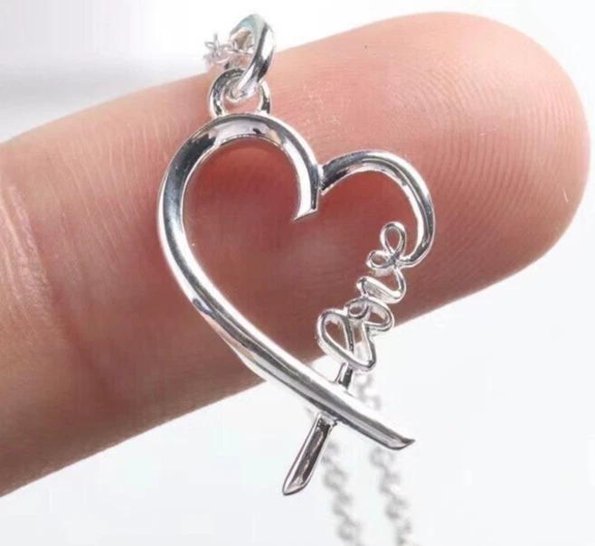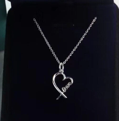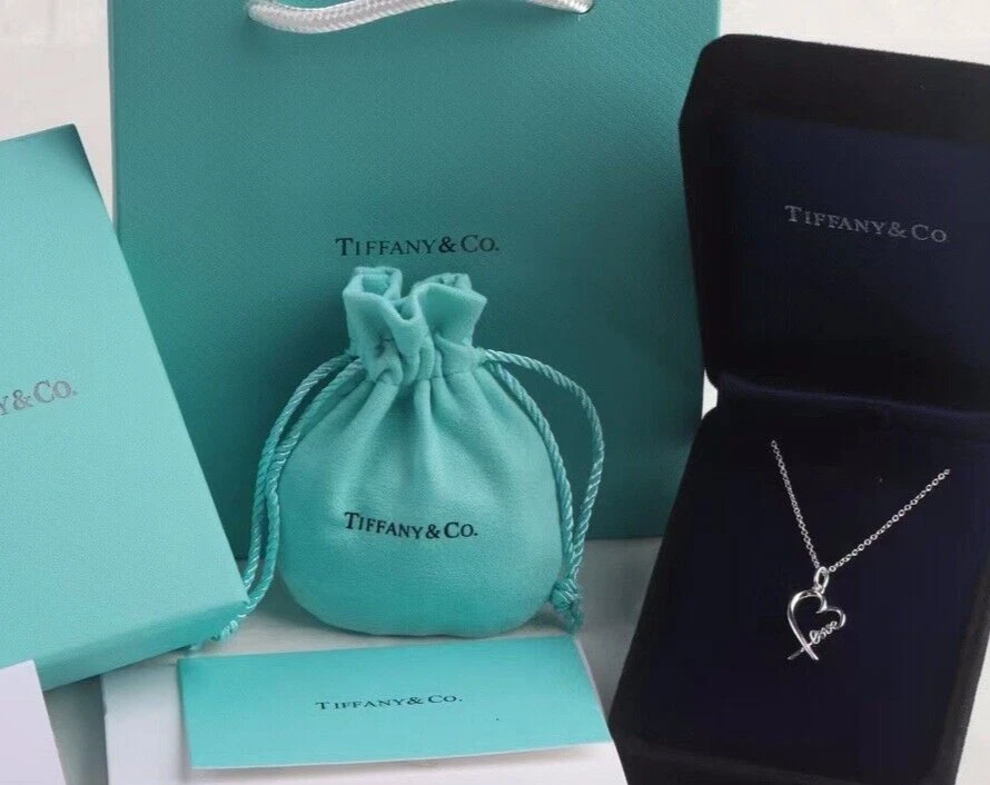 This beautiful Tiffany & Co. necklace is crafted from 925 sterling silver and features a heart-shaped pendant charm. The necklace is perfect for adding a touch of charm and elegance to any outfit. The pendant is designed with intricate details and is sure to catch the eye of anyone who sees it. The necklace is part of the Tiffany & Co. Hearts collection and is an excellent addition to any fine jewelry collection. The necklace is available in a variety of styles, including chain and pendant, and is perfect for any occasion. A staple piece for any Tiffany lover or a great gift idea. Length: 17 inch(45cm) Metal: 925 sterling silver A staple piece for any Tiffany lover or a great gift idea. In good condition. Comes with box and bag