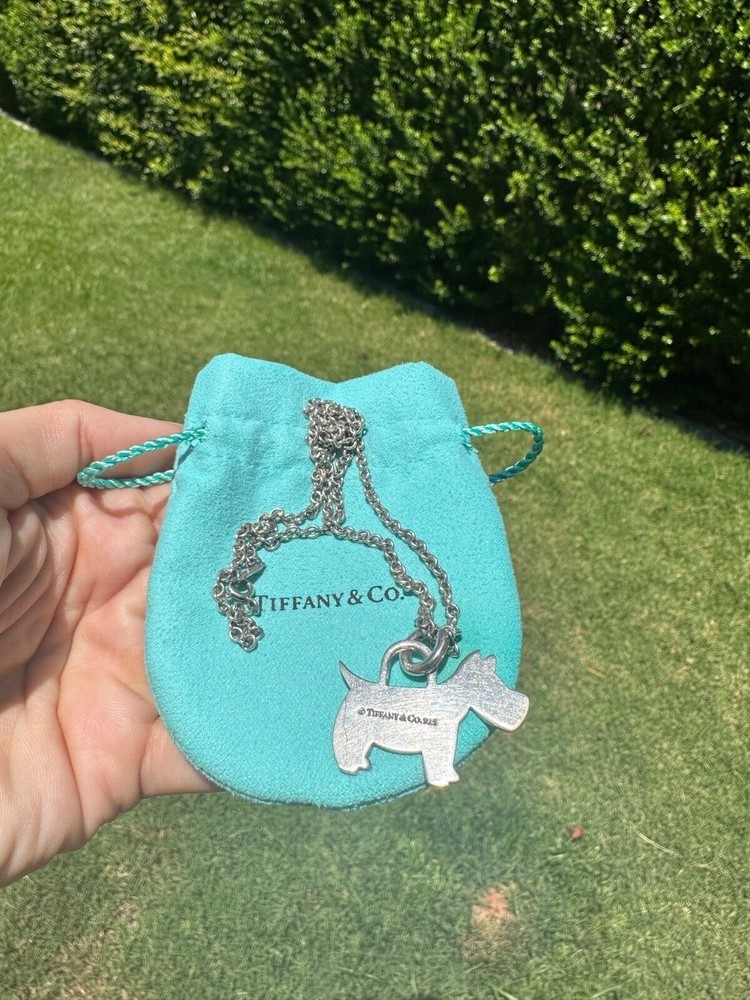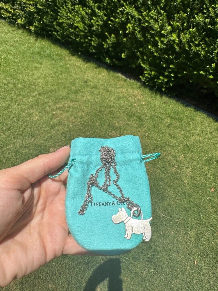 Tiffany co sterling silver necklace with a dog. Comes with an original bag