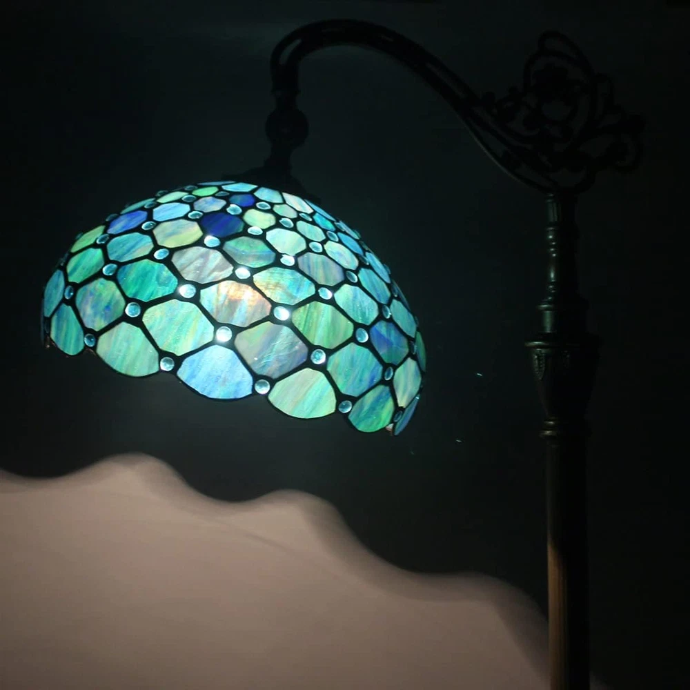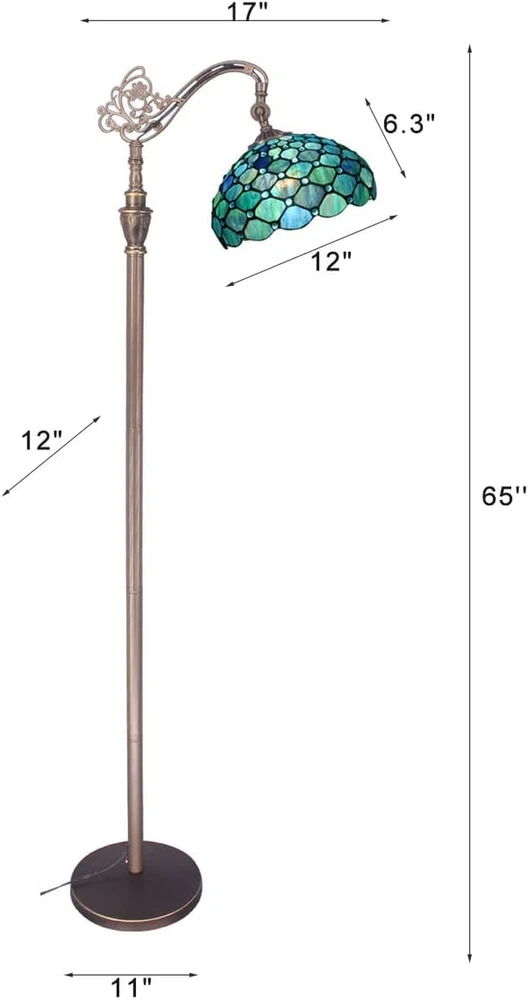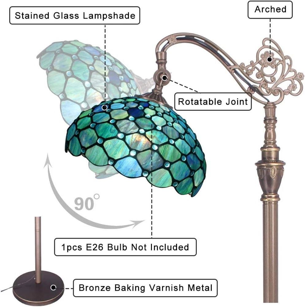 Special Feature: tiffany stained glass angle adjustable floor lamp Installation Type: Freestanding Color Temperature: 2700 Kelvin Connectivity Technology: USB Bulb Base: E26 Style: Tiffany Product Dimensions: 18.88"D x 12"W x 67"H Bulb Features: Different light sources cast different shade colours Water Resistance Level: Not Water Resistant Lighting Method: Downlight Wattage: 100 watts Material: Glass, Metal Part Number: E21F12 Cartoon Character: Floor Lamp Indoor/Outdoor Usage: Indoor Shape: Round Lamp Type: Floor Lamp Item Weight: 11.02 pounds Light Source Type: E26 G45 6W LED warm light bulb Batteries Required?: No Special Features: tiffany stained glass angle adjustable floor lamp Type: Does not apply Brightness: 800 Lumen Power Source: Corded Electric Is Waterproof: False Item model number: Tiffany Arched Bronze Floor Lamp Certification: UL Country of Origin: China Finish Type: Antique Number of Items: 1 UPC: 7445017811820 Control Method: Touch Specific Uses For Product: Indoor use only Base Material: Antique brass metal base Number of Pieces: 1 Number of Light Sources: 1 Maximum Compatible Wattage: 100 Watts Bulb Shape Size: A19 Shade Color: Sea Blue Switch Type: Foot-operated push button switch gtin13: 7445017811820 Mounting Type: Floor Mount Room Type: Living room Dining room kitchen corridor corner balcony sunroom g Batteries Included?: No Brand: Does not apply Color: Z12E21F12 Is Cordless?: No