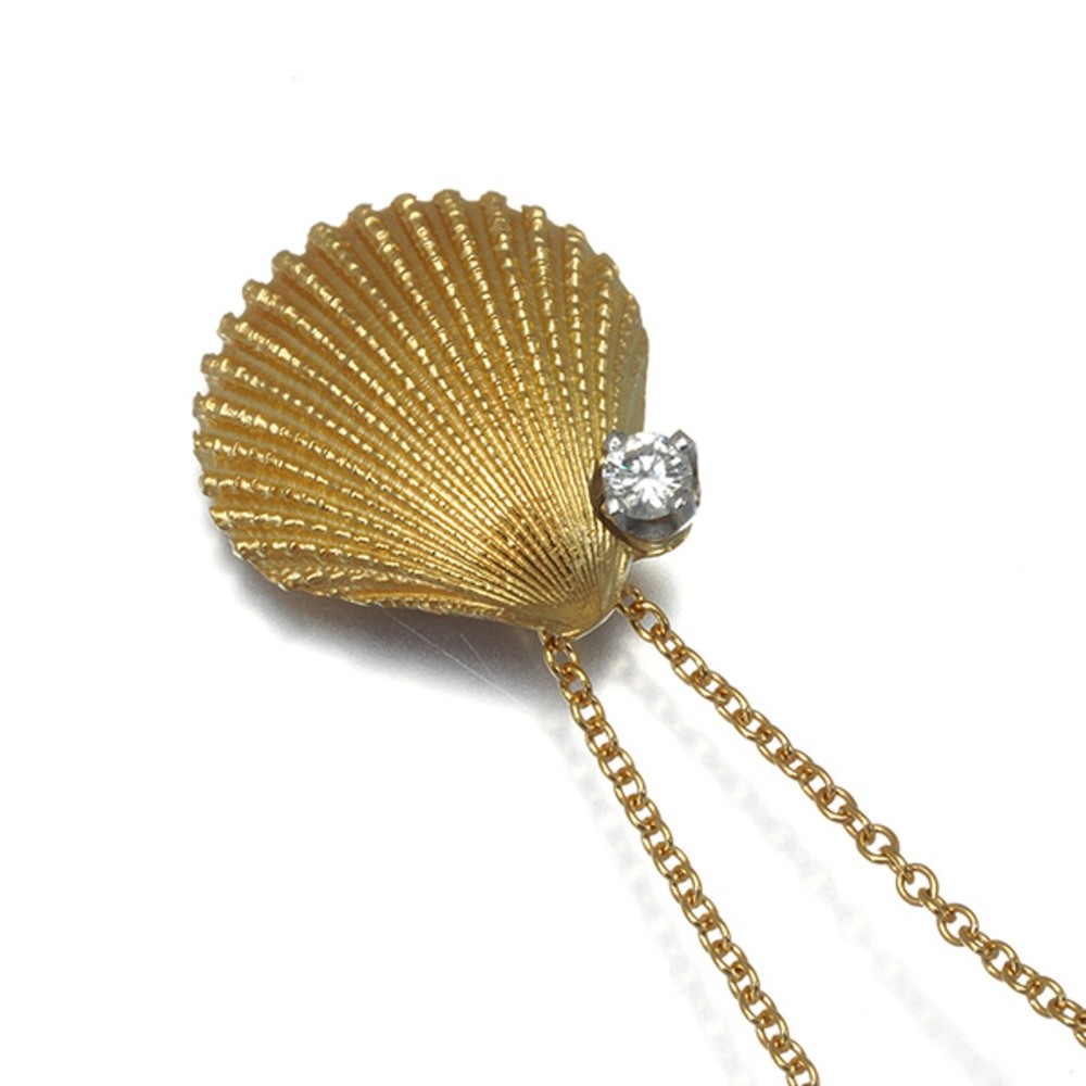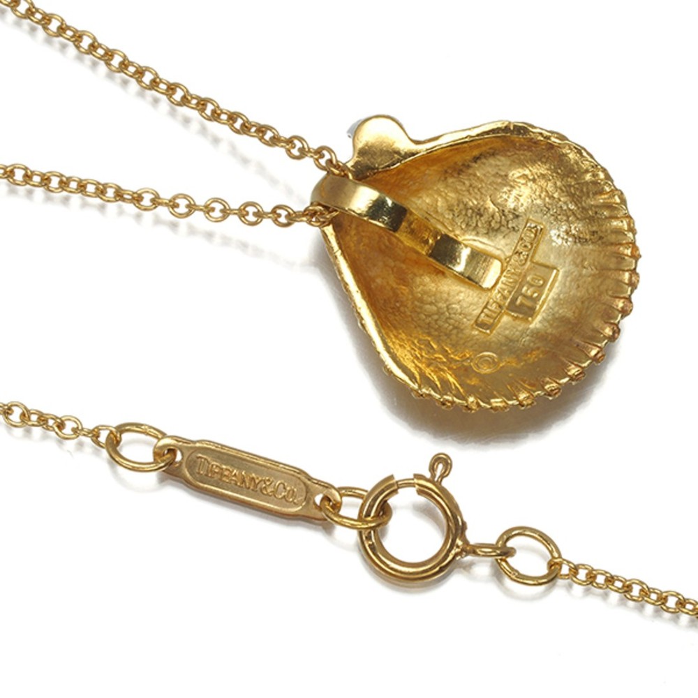 Tiffany K18YG WG Diamond Shell Necklace Elegant Jewelry