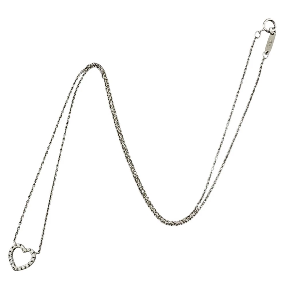 Tiffany Metro 18K White Gold Diamond Heart Necklace Pre-Owned K18 Ladies