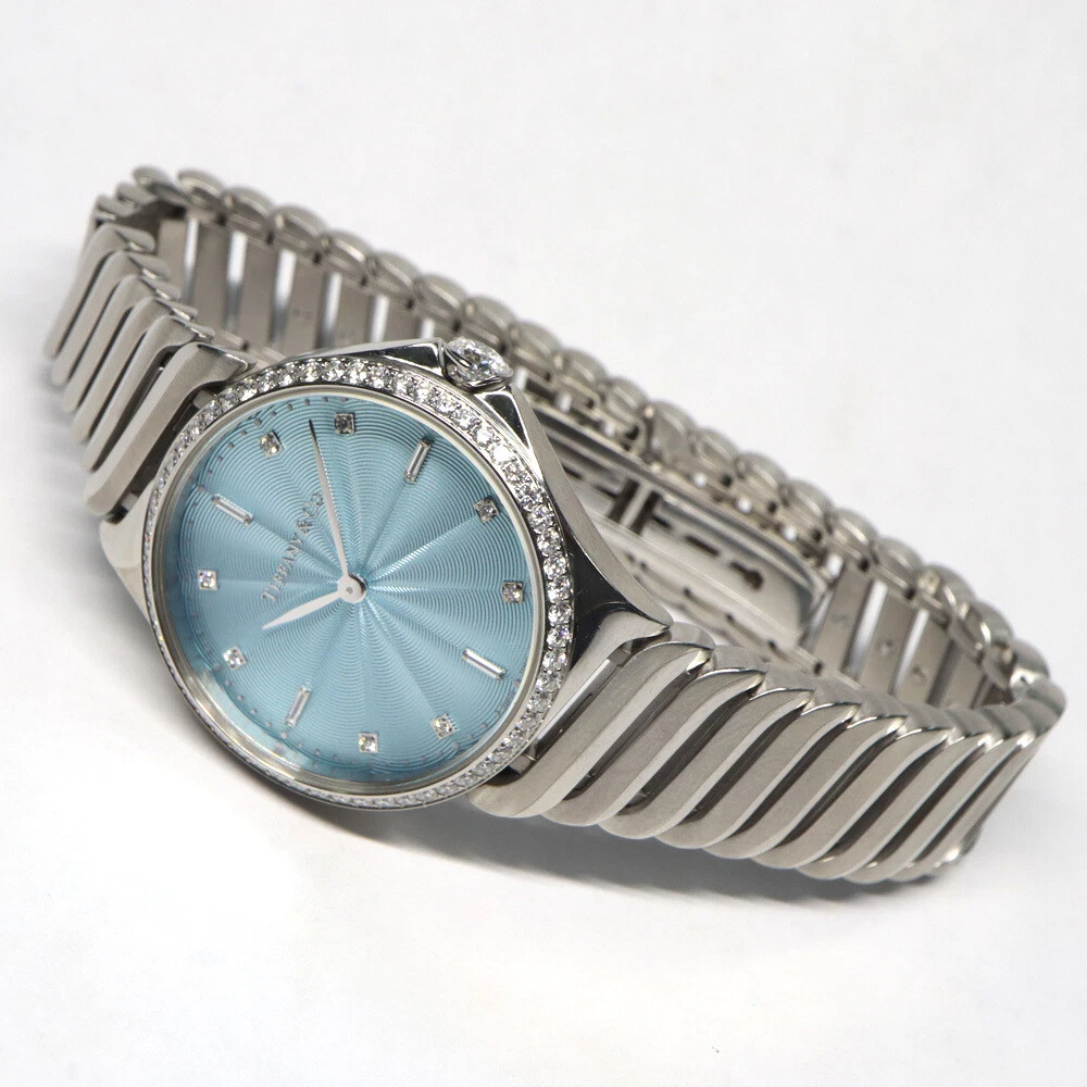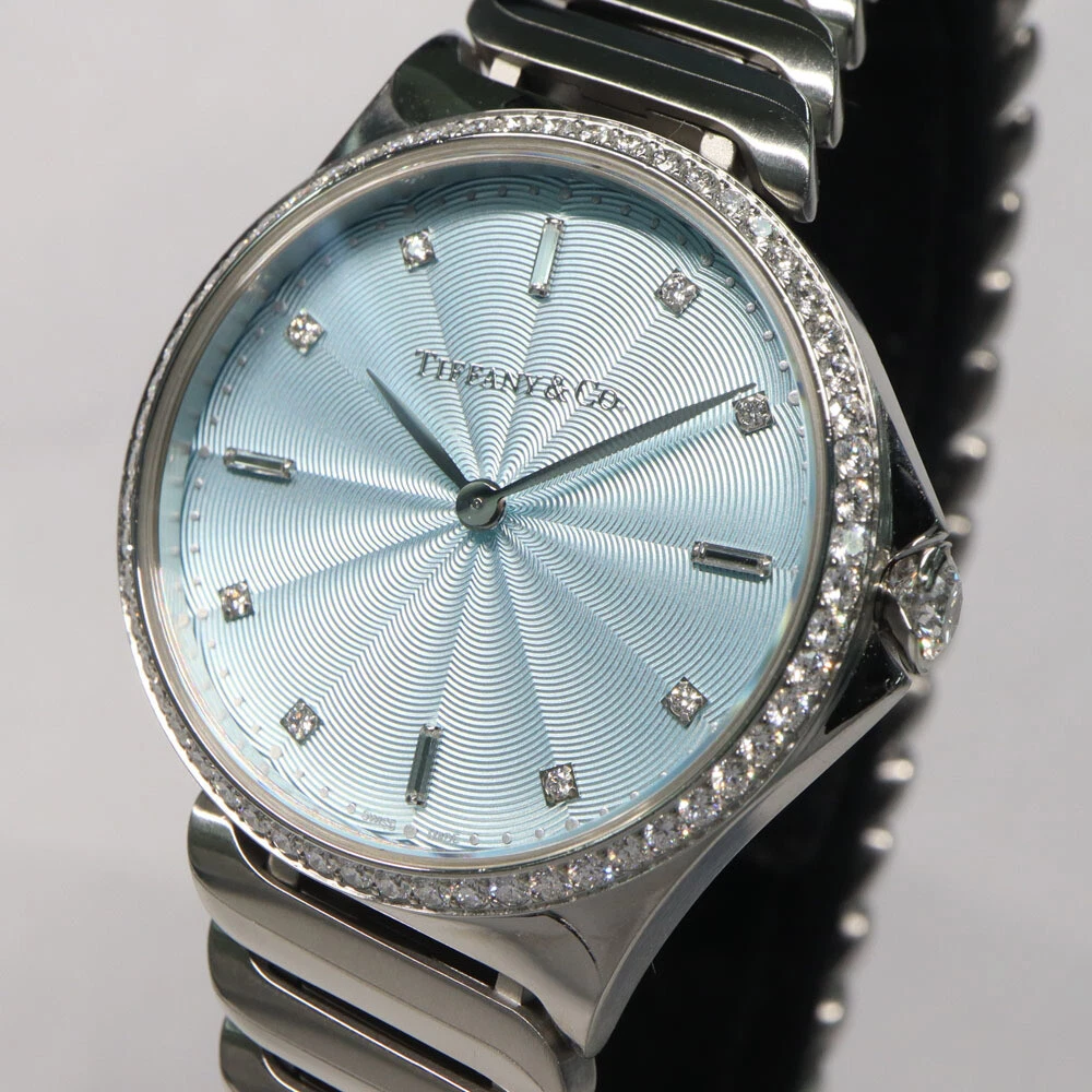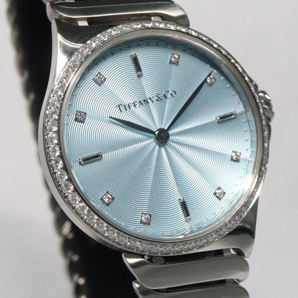 Tiffany Metro 2 Hand Diamond Bezel Ice Blue 12P Diamond Quartz Women s Watch