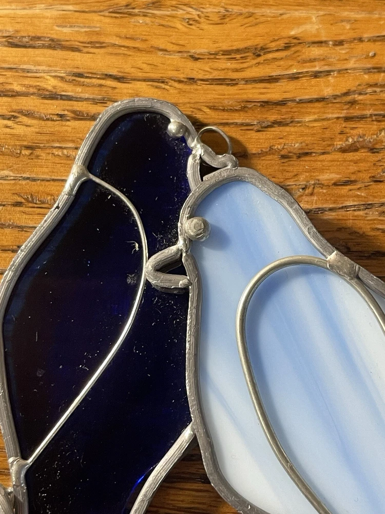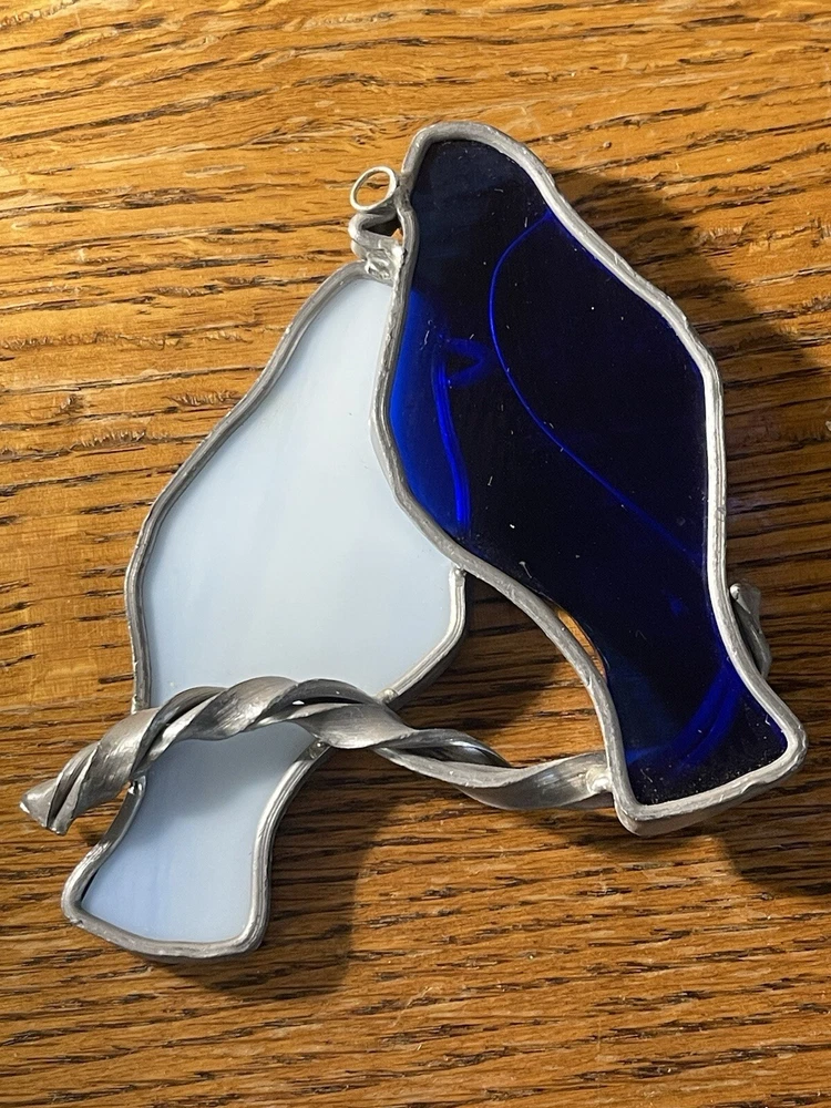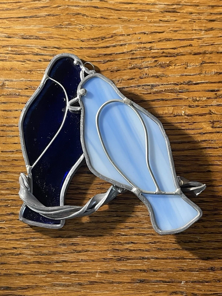 Tiffany Stained Glass Blue Lovebirds Suncatcher 4”