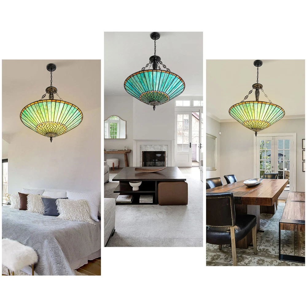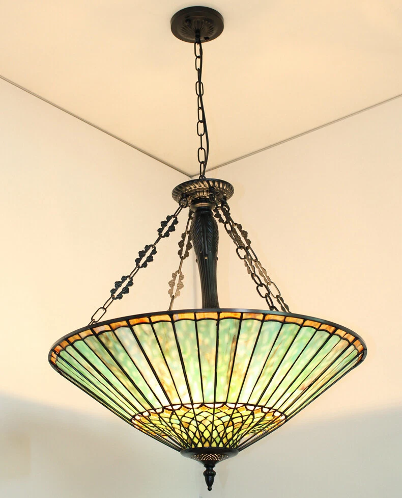 Specifications Style: Tiffany Color: Emerald Green (Light Off) Material: Stained Glass, Zinc Alloy Process: Stoving Varnish, Cutting, Polishing, Tin-soldering, Coating Technology Control Method: Reserved Wall Switch Mounting Type: Ceiling Mounted Light Fixture Form: Ceiling Power Source: Corded Electric Voltage: 110V Efficiency: E Light Source: 5*E26 Bulbs(Not Included) Bulb Types: Energy-saving Bulb, Incandescent Bulb, LED Max. Single Bulb Power: 80W Illumination Area: 15-20m²/ 161.45-215.27ft² Suitable Floor Height: 2.8-3.5m/9.18-11.48ft Adjustable Height: 50-100cm/19.68-39.37inch Chain Length: About 40cm/15.7inch Product Overall Height: 100cm/39.37inch Shade Diameter: 60cm/23.62 inch Base Diameter: 13cm/5.11inch Package Included 1* Pendant Light 1* English Manual Tiffany Stained Glass Ceiling Light Living Room Pendant Lamp Height Adjustable Description The Tiffany style pendant light with its gorgeous colors and classic conic shape is not only an excellent tool to light up your room but also embellish your room with unique and beautiful elements. With exquisite workmanship and durable stained glass, it is not easy to fade. You can install 5 E26 bulbs yourself such as incandescent and LED bulbs to create different lighting atmospheres and express your unique taste. Key Features Eye-Catching Tiffany Style: The umbrella-like shape light embellished with a special stained glass lampshade makes it appear distinct individuality and adds a sense of retro feelings to the modern environment. It appears natural emerald green color when the lights are off and presents different visual feelings under different lighting conditions. Long Service Life: Made of premium stained glass and zinc alloy with delicate cutting, polishing, splicing, high-temperature soldering, stoving varnish, and anti-rust oil coating processes, this pendant light is resistant to rust, wear, fade, corrosion, and deformation, so you can use it with confidence. Adjustable Height: You can adjust the overall height of this light from 19.68-39.37" by shortening or removing the hanging chain, thus creating different lighting effects and decorative appearance. Safety Guaranteed: The ground wire with over-temperature and overcurrent protections and the light bulb connection parts made of insulating bakelite improve the safety of use without worrying about electric shock. Easy to Clean: The smooth surface after stoving varnish and coating technologies makes it easy to clean by gently and smoothly wiping with a cloth. Ideal Gift: This product is stylish and high-quality and can be used as a housewarming, birthday, or holiday gift for parents, friends, and loved ones. Protective Package: To prevent the product from being damaged during transportation, we packed it with foamed plastic to protect your products to the maximum extent possible. Buy with Confidence: We are honored that you have chosen our product. We have sufficient confidence in the quality of the product so that you can buy it confidently. But if you have any questions, you can contact our customer service, he will patiently answer and solve your problems. Details Standard E26 Lamp Holder: 5 E26 holders can be adapted to various models of bulbs such as LED, incandescent, and energy-saving bulbs to create different lighting effects. You simply screw the bulbs off and change a new one on. Sturdy Chains&Base: The four sturdy chains firmly connect the lampshade to the lamp body, together with the thickened base of 5.11" in diameter, ensuring high stability and making you use this light with peace of mind. Application Its applicable area is about 161.45-215.27ft² and its applicable height is about 9.18-11.48ft. It is suitable for dining rooms, kitchens, living rooms, entryways, stairways, clothing stores, coffee shops, bars, bedrooms, studies, etc. Specifications Style: Tiffany Color: Emerald Green (Light Off) Material: Stained Glass, Zinc Alloy Process: Stoving Varnish, Cutting, Polishing, Tin-soldering, Coating Technology Control Method: Reserved Wall Switch Mounting Type: Ceiling Mounted Light Fixture Form: Ceiling Power Source: Corded Electric Voltage: 110V Efficiency: E Light Source: 5*E26 Bulbs(Not Included) Bulb Types: Energy-saving Bulb, Incandescent Bulb, LED Max. Single Bulb Power: 80W Illumination Area: 15-20m²/ 161.45-215.27ft² Suitable Floor Height: 2.8-3.5m/9.18-11.48ft Adjustable Height: 50-100cm/19.68-39.37inch Chain Length: About 40cm/15.7inch Product Overall Height: 100cm/39.37inch Shade Diameter: 60cm/23.62 inch Base Diameter: 13cm/5.11inch Package Included 1* Pendant Light 1* English Manual Notes You need 5 E26 bulbs with a single bulb less than 80W (not included), and please make sure the power is cut off before installation. To ensure your safety, we recommend that two people install this ceiling light together. Please install it by someone with an electrical license if necessary. Please check the product size before ordering to make sure it fits your room. It is suitable for flat ceilings but not arched or sloped ceilings. The product needs the reserved switch on the wall to control the light. If you need to adjust the brightness of the light, please install the dimmer switch on your own. The sound may be like plastic when you knock on the lampshade, but it is the feature of the Tiffany glass. If you still have doubts, the glass is fire-proof and scratch-resistant , you can put it on fire for a few minutes, or use a knife to cut it as tests. Please read the manual completely before use. Please allow the slight color difference caused by the shooting light and 1-3cm error due to manual measurement, and make sure you do not mind before you order. Payment Delivery details Terms of sales About us Contact us Payment We accept ebay payment 。 Fees such as import duties, taxes are not included in the item price or shipping costs. These charges are the buyer's responsibility. Delivery details Shipping: 2-9 working days to: USA Terms of sales We maintain hig