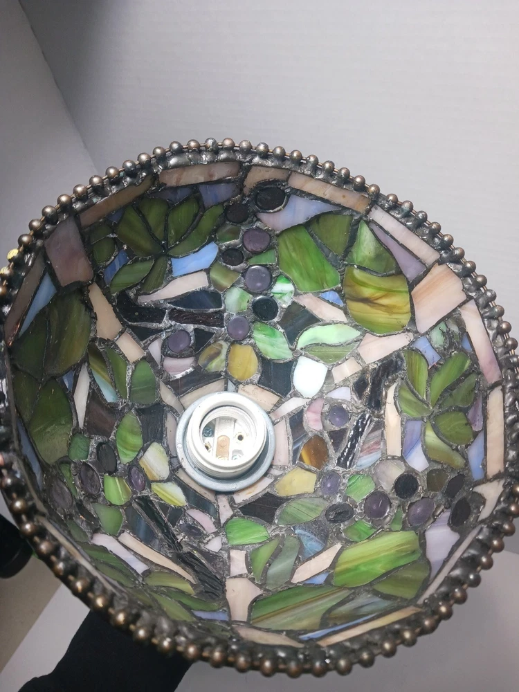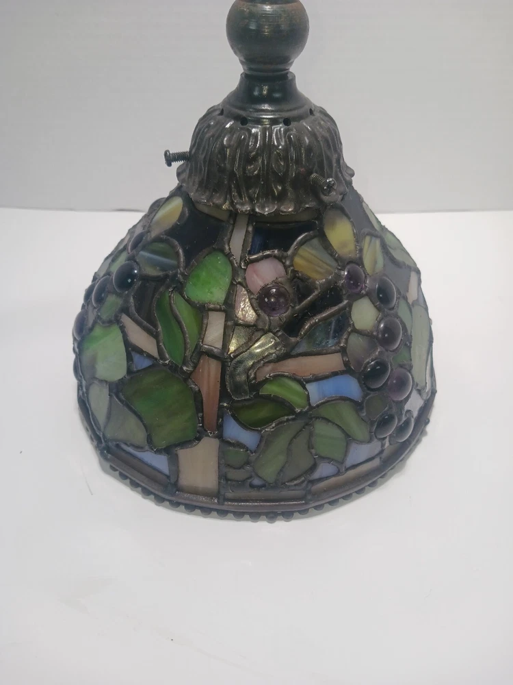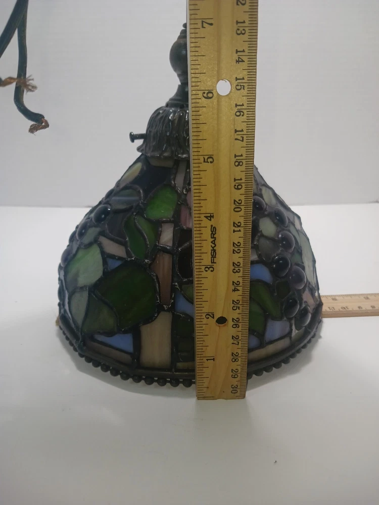 No plug..designed to be straight wired. Or you can install a plug. This stunning pendant light fixture is a must-have for any home. With its Tiffany-style stained glass design and jeweled finish, this ceiling lamp is sure to add a touch of elegance to any room. The light sensor and 8-inch diameter make it a functional and stylish addition to your home decor. Ideal for use in a dining room, living room, or bedroom, this pendant light fixture is crafted by the renowned brand Tiffany & Co. Its stunning design and high-quality materials ensure that it will last for years to come. Add a touch of luxury to your home with this beautiful stained glass pendant light.