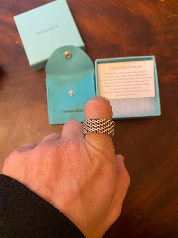 Pre-Owned, Like New (worn twice) AUTHENTIC Tiffany and Co. Somerset Silver Mesh Ring. Discontinued design. With Stamp and original packaging.