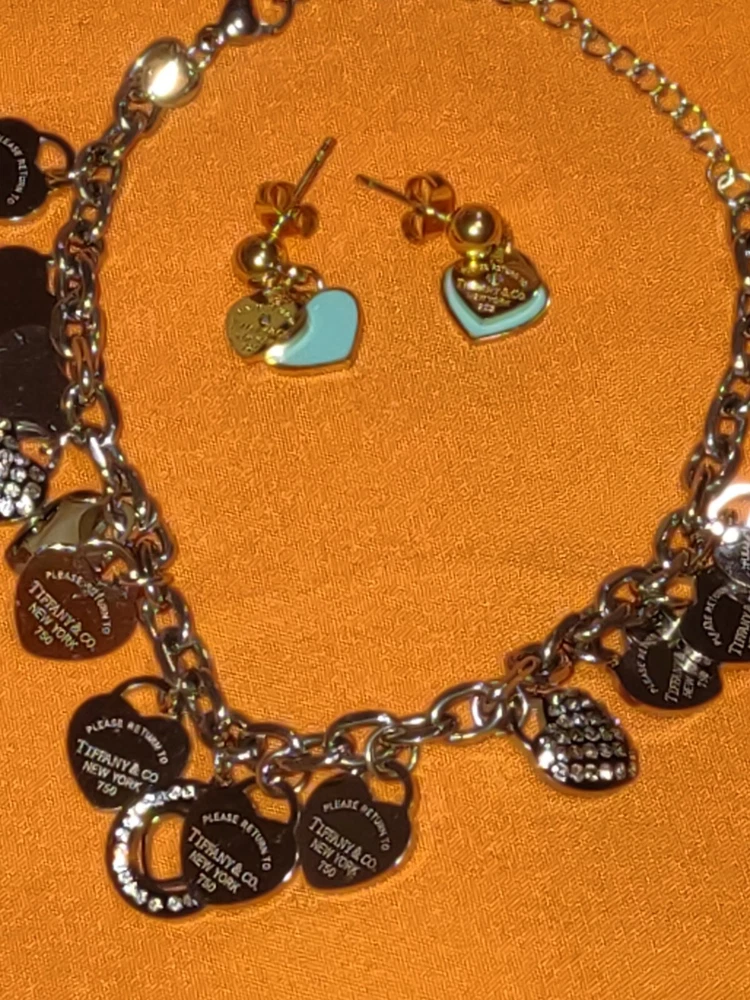 Tiffany bracelet and earrings, they look beautiful.. Condition is New with tags. Shipped with USPS Ground Advantage.