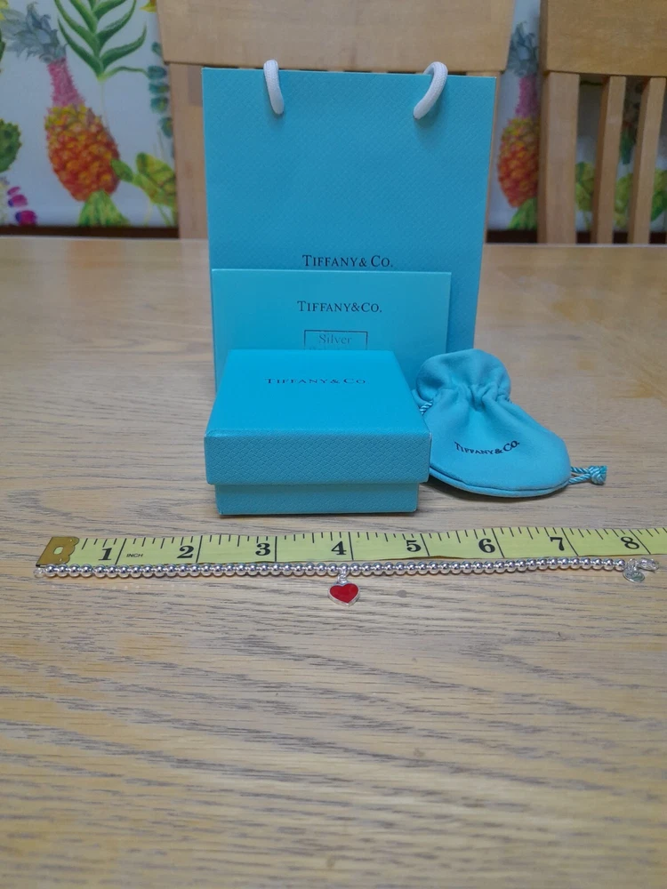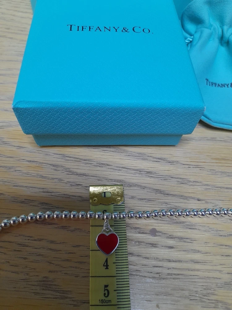 PLEASE NOTE: I will package and post this or any other Tiffany&Co. item listed for sale by Royal Mail special delivery on the next working day after purchase, so it will arrive on the following working day around 1pm (UK)ππ This beautiful, brand new, authentic Tiffany & Co. Return To Tiffany Red Heart tag pendant bracelet β€οΈ is a must-have for any jewellery lover. Crafted from 925 sterling silver, it features a charming red enamel/sterling silver heart tag pendant and a reversible design. The bracelet is 20 cm/8" in length (size Large) and has a 4mm ball/bead chain with a secure lobster closure β€οΈ Perfect for any occasion, this bracelet is ideal for Christmas, weddings, anniversaries, birthdays, or Valentine's Day. It is handmade and engraved with the Tiffany & Co. Return to Tiffany collection. The bracelet is signed and comes with an engraved Tiffany & Co. 925 certification. Add a touch of beauty and love to your outfit with this stunning piece of jewellery. Please see all the photographs of the item for sale as these form a part of this description and demonstrate all details, measurements and the weight of the bracelet. This bracelet weighs 7.34 grams. This bracelet is in brand new, never worn condition. RRP Β£265 on Tiffany&Co website. Perfect for gifting π β€οΈ Please note that this sale includes the Tiffany&Co dust pouch, box, a silver polishing cloth, and a gift bag as photographed. It also includes free Royal Mail special delivery π π Please note that the description brand new without tags is applicable because not all the packaging is the original packaging, so Ebay's descriptors describe this as new without tags π Once purchased, this item will be carefully packaged and posted to you quickly, 1 working day via Royal Mail special delivery π Please see my other listings for sale, which include many other beautiful authentic Tiffany&Co. items for sale, both brand new and preloved rare retired items ππ