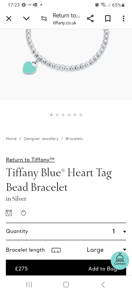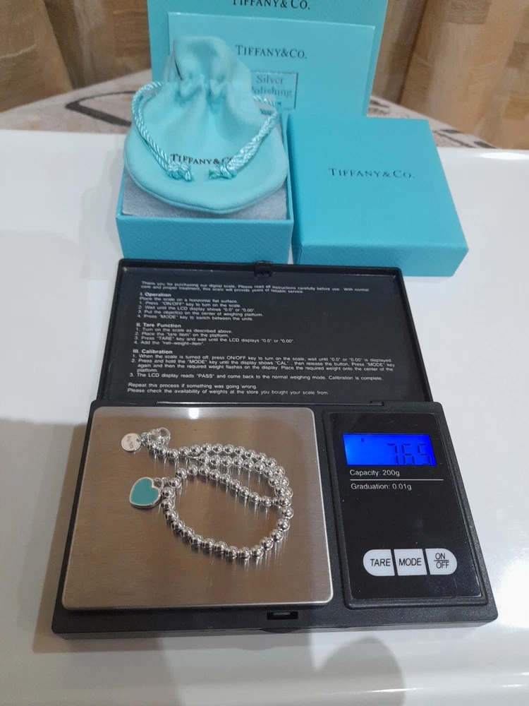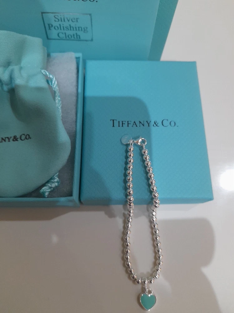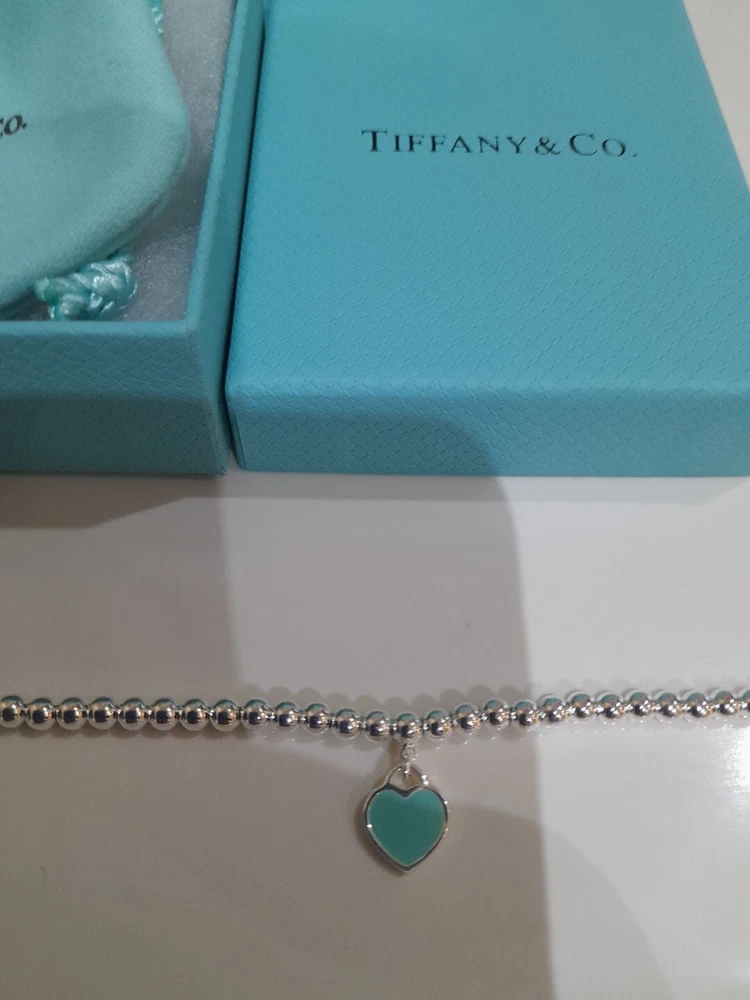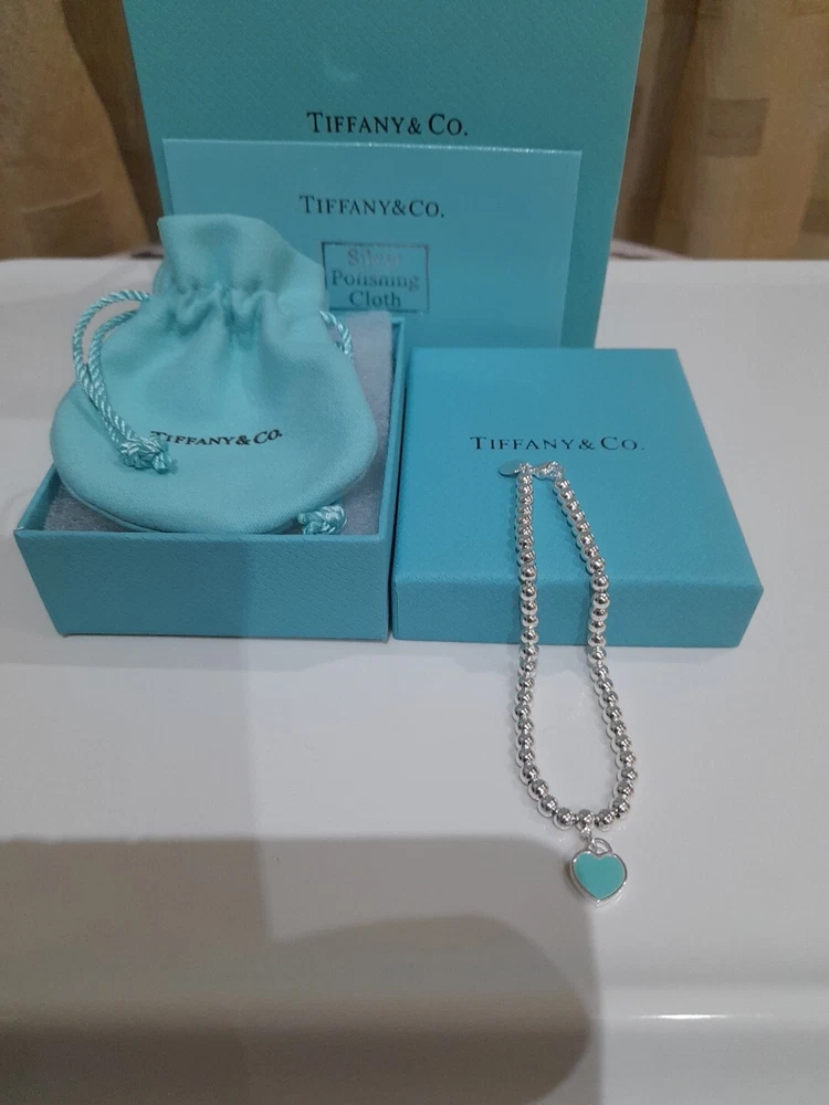 This beautiful, brand new, authentic Tiffany & Co. Return To Tiffany Tiffany Blue Heart tag pendant bracelet is a must-have for any Tiffany&Co. jewellery lover. Crafted from 925 sterling silver, it features a charming blue enamel/sterling silver heart tag pendant and a reversible design. The bracelet is 20 cm/8 inces in length/size large and has a 4mm ball/bead chain with a secure lobster closure π Perfect for any occasion, this bracelet is ideal for Christmas, weddings, anniversaries, birthdays, or Valentine's Day. It is handmade and engraved with the Tiffany & Co. Return to Tiffany collection. The bracelet is signed and comes with an engraved Tiffany & Co. 925 certification. Add a touch of beauty and love to your outfit with this stunning piece of jewellery. Please see all the photographs of the item for sale as these form a part of this description and demonstrate all details, measurements and the weight of the bracelet. This bracelet weighs 7.34 grams. This bracelet is in brand new, never worn condition. RRP Β£265 on Tiffany&Co website. Perfect for gifting π β€οΈ Please note that the description brand new without tags is applicable because not all the packaging is the original packaging, so Ebay's descriptors describe this as new without tags π Please refer to my Ebay selling feedback and comments, many of which are for my authentic Tiffany&Co. items, including this actual item listed for sale π Please note that this sale includes the Tiffany&Co dust pouch, a box, a silver polishing cloth, and a gift bag as photographed. It also includes free Royal Mail special delivery π Once purchased, this item will be carefully packaged and posted to you quickly, 1-2 working days via Royal Mail special delivery π Please see my other listings for sale, which include many other beautiful authentic Tiffany&Co. items for sale π π