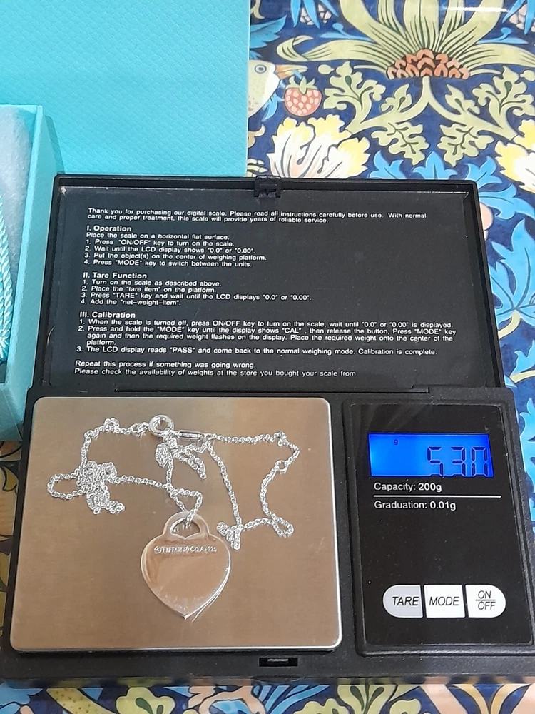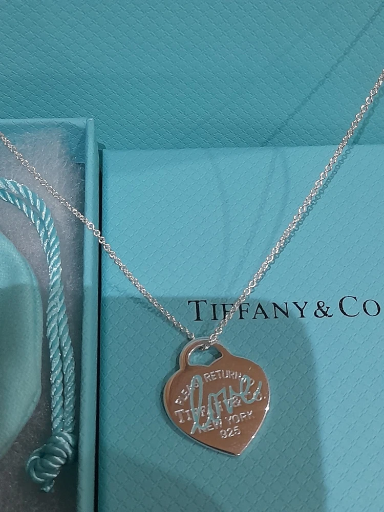 This brand new authentic Tiffany & Co. Return To Tiffany necklace features a heart-shaped pendant made of 925 sterling silver, with a Tiffany Blue "Love" graffiti design. The pendant is reversible and adjustable, hanging on a 45 cm/18" oval link chain that can be adjusted to 16". The necklace weighs 5.3 grams and is hallmarked as authentic Tiffany & Co. It is signed and comes with an engraved certification. This charming piece is ideal for occasions like Mother's Day, anniversaries, birthdays, and Valentine's Day, making it a perfect gift for a loved one. Please see all the photographs of the actual item for sale as these form a part of this description and demonstrate all the details of this beautiful necklace, including it's brand new condition, its measurements, Tiffany and Co. markings, 925 hallmarking, and weight of 5.3 grams. The heart tag pendant measurements are: Length: 25 mm Width: 25 mm Please note that this item is no longer available on the current Tiffany&Co. website, making it a rare and beautiful find π Perfect for gifting π This sale includes the Tiffany&Co. pouch, a box, and a gift bag π PLEASE NOTE: Some of this packaging has been added to the original packaging to make this better for gifting. Hence, it is described as new without tags according to Ebay's descriptors π The sale also includes Royal Mail special delivery for tracking and insurance purposes π On purchase, this necklace will be carefully packaged together with the Tiffany accessories and posted quickly to you, 1-2 working days via Royal Mail special delivery. You should expect to receive the necklace on the following working day after postage by around 1pm π Thank you for looking π Please see my other listings for sale as these include many other stunning authentic Tiffany&Co. Items, both brand new items currently available on the Tiffany&Co website, brand new items retired from the current Tiffany&Co website, such as this necklace, making it a rare find, and other preloved retired rare items for sale ππ