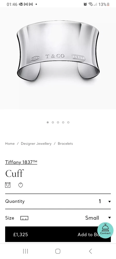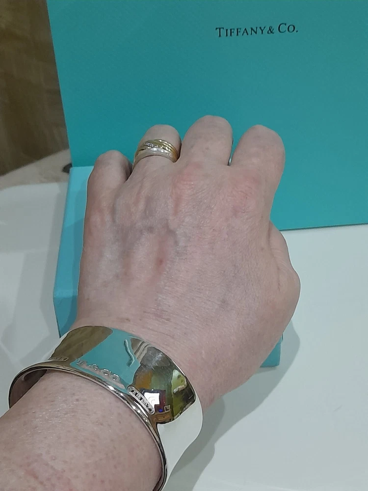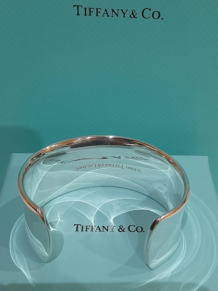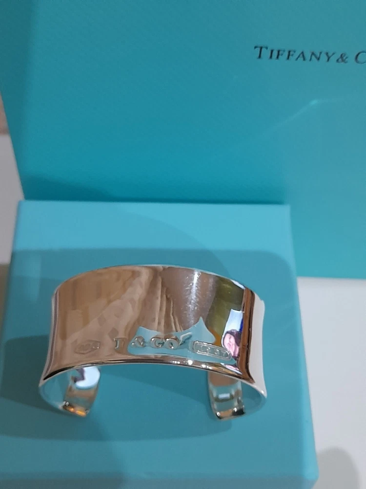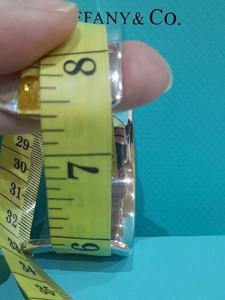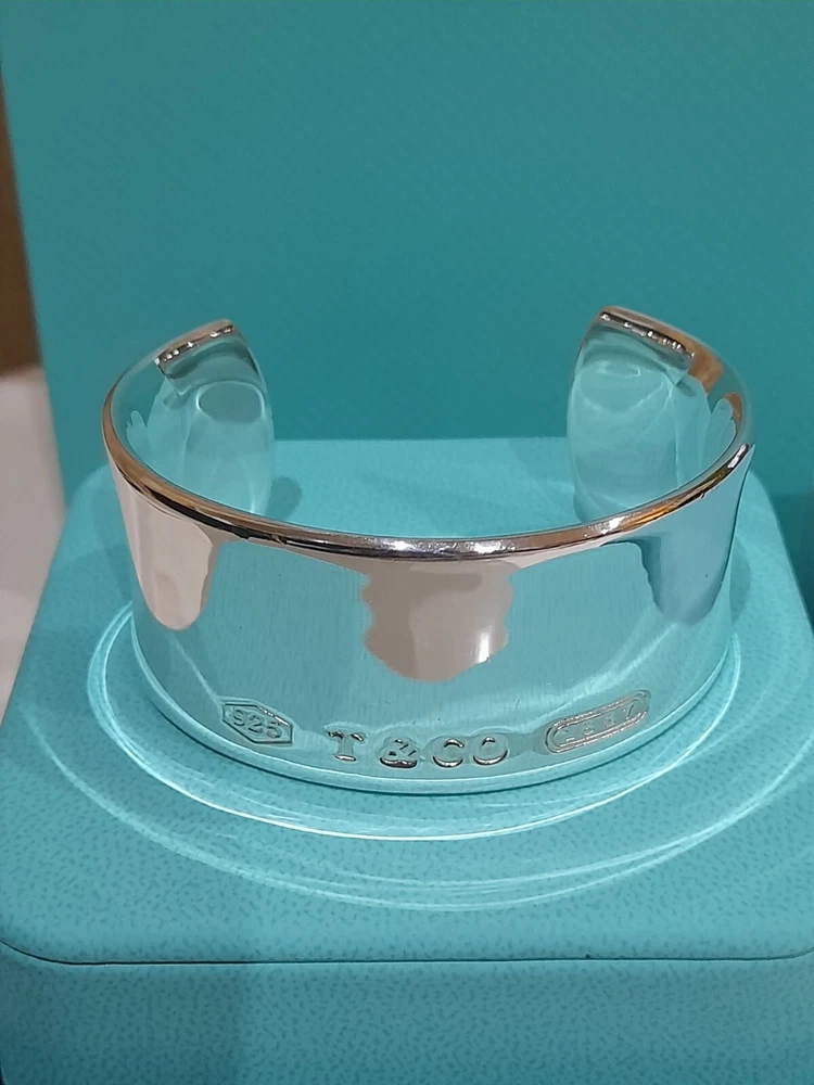 PLEASE NOTE: I will package and post this item or any other Tiffany&Co. item listed for sale quickly 1-2 working days after purchase by Royal Mail special delivery, so it will arrive on the following working day after postage around 1pm (UK) ππ Crafted by the highly esteemed Tiffany & Co., this solid sterling silver 925 extra wide cuff bracelet is an exquisite piece from the Tiffany 1837 collection β€οΈ With a total circumference of 7 3/8 inches, size large, it showcases a sophisticated oval shape and a concave design, giving it a modern yet timeless appeal. The bracelet's width measures 30mm, the bracelet's gap measures 1 and 5/8 inches, and the width across the bracelet is approx 2 and 5/8 inches. Fits wrists approximately 6.5 - 7 inches circumference.. The bracelet weighs 83.3 grams, showcasing its substantial feel without the embellishment of stones. The bracelet is finished in a lustrous silver hue, complemented by an engraved 925 hallmark, confirming its excellent quality. Its aesthetic is elevated by the iconic Tiffany & Co. branding, making it an inspirational and loving piece. Handmade in the United States, this bracelet is a perfect choice for various special occasions, including Christmas, anniversaries, birthdays, and Valentine's Day, or as a very thoughtful gift for any special occasion for someone special ππβ€οΈ Please see all the photographs of the actual item for sale as these form a part of this description and demonstrate all the details of this stunning authentic Tiffany&Co. Bracelet, including measurements, markings, 925 hallmarking, weight of 83.3 grams, and its excellent preloved condition π Perfect for a very special gift, or for treating yourself to something truly stunning ππβ€οΈ This iconic extra wide open cuff bracelet is part of the iconic Tiffany&Co 1837 range. Brand new, this item retails at Β£1325 on the Tiffany&Co website (see last photograph), so this sale represents an absolute bargain π°β€οΈ Please note that this sale includes the Tiffany&Co blue leather bracelet box, an outer box, and a gift bag as photographed πππ PLEASE NOTE : Some of this packaging has been added to the original packaging to make this better for gifting. Hence, it is described as new without tags according to Ebay's descriptors π This sale also includes Royal Mail special delivery, which includes insurance and tracking π Once purchased, this beautiful bracelet will be carefully packaged together with the Tiffany&Co packaging and posted quickly to you 1-2 working days π Thank you for looking π π β€οΈ Please also see my other listings for sale as these include many other stunning authentic Tiffany&Co. items for sale, both brand new, preloved, and rare retired items for sale ππβ€οΈ