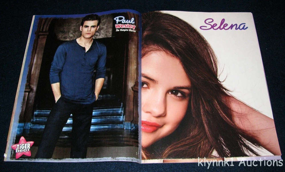 Tiger Beat Magazine - Great Addition to your Collection Condition : Very Good ... May have minor scuffing on cover - Includes All Posters and pinups Full Page Pinups of : Justin Bieber, Miley, Selena, Big Time Rush, Nathan Kress, Big Time Rush, Paul Wesley, Lady Gaga, Rob Pattinson, Demi Lovato, Taylor Swift, Liam Hemsworth, Jonas Brothers Centerfold Posters (2-sided) : Justin Bieber, Selena, Justin Bieber, Taylor Swift, Taylor Lautner, Big Time Rush **These 2 show some signs of handling inkfrog terapeak