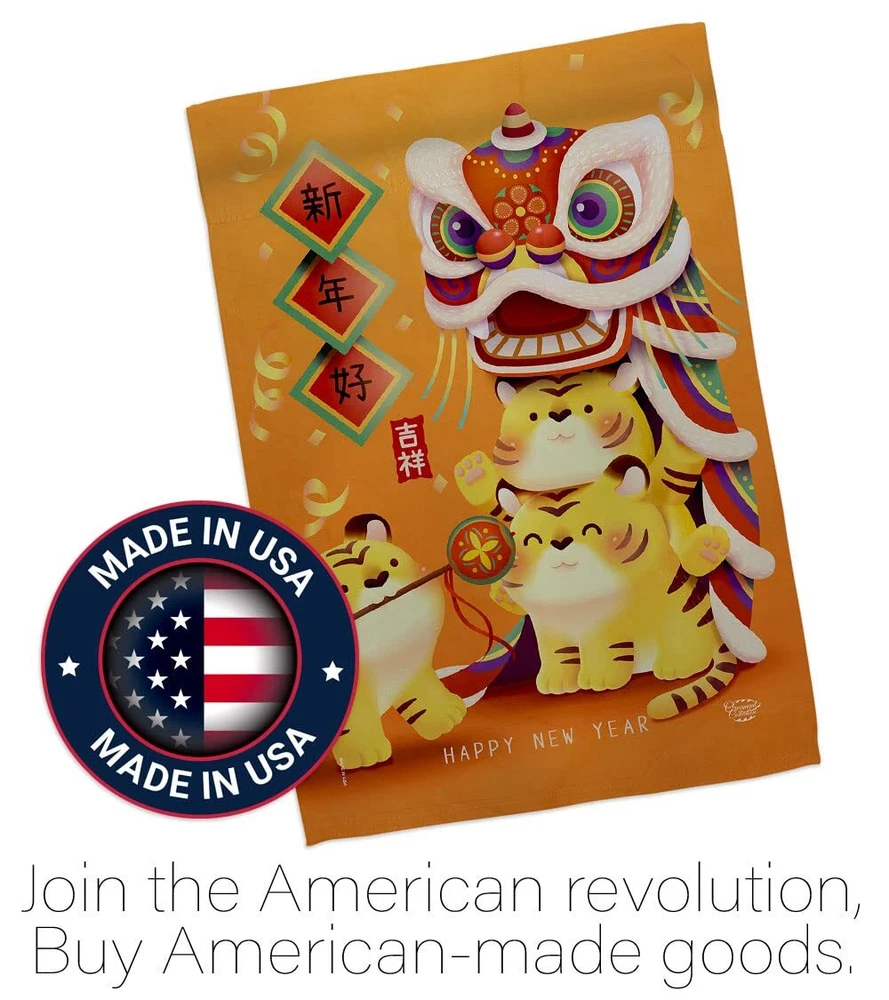 Tigers Year Garden Flag Set with Stand New Lunar Good Luck Prosperous Seasona...