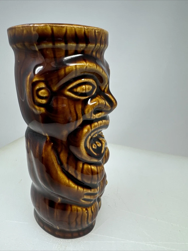 Great condition no chips or cracks This vintage Tiki mug features beautiful glazing. handmade in Japan with Hawaiian culture influence. The provenance of this mug is not available, but it is a unique addition to any collection. The mug is perfect for those who appreciate Hawaiian culture and Tiki art. It is a great conversation starter and a wonderful piece to display in any living space.