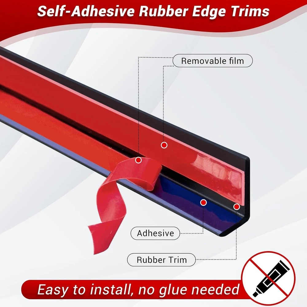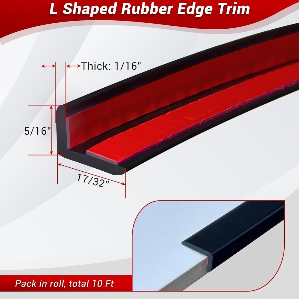 Tile Edge Trim, Flexible Rubber L Shaped Small Size Corner Trim, Peel and Stick Edging Trim for Tile and Wall Edges, Table Edge Trim, Black Color, 10Ft High Quality Material: Made of dense rubber, durable and not easy to age, extremely hard wearing and washable. Compare to other's PVC material edge trim, EPDM material edge trim is not easily broken down by ultraviolet light and ozone, has better thermal stability, radiation resistance and weather resistance. Flexible: Made of high quality rubber, soft and flexible, can be bent and folded arbitrarily, unlike PVC material corner edge trim which is hard and difficult to bend. Easy to Cut and Bend: This rubber corner edge trim can be easily cut with scissors and is flexible enough to bend into tight corners and complex angles, Perfect for curved edges as well as straight edges. Self-Adhesive Edge Trim: This L shaped edge trim can be installed directly without glue, just need to peel off the film on the adhesive and stick the trim directly. High Quality Adhesive: The glue we use is high-quality glue with high strength, not easy to fall off, and not easy to oxidize outdoors. The glue on the edge trim is easy to remove and does not corrode the product, no marks will remain on the product after removing the edge trim. Widely Application: Our corner edging trim is small in size and can be widely used to protect corner of ceramic tile, table, desk, drawer, shelf, cabinet, mirror, pedestal, sink tile wall, niches, etc.