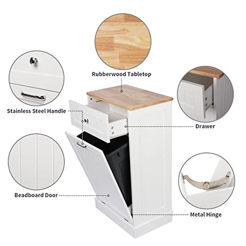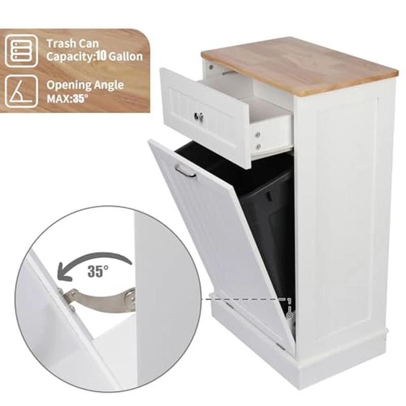 You may also like Travel Bird Cage Easy Assembly Stainless Steel Food Cups Secure Perches Ruby New 69.14 USD Free shipping Horse Leggings Breathable Plastic Mesh Loose Fitting Boots Equine Care New 55.31 USD Free shipping Portable Folding Workbench Instant Setup 1000 Lb Capacity 12 In Clamps Wood Shop 108.66 USD Free shipping Portable Leakproof 28 Can Backpack Cooler Insulated Ice Retention Hiking Beach 47.4 USD Free shipping 3-In-1 Entryway Organizer Coat Rack Shoe Bench W/9 Hook Storage Shelf Industrial 56.3 USD Free shipping Adjustable Overhead Garage Storage Rack Heavy Duty Steel 250 Lbs Capacity New 122.34 USD Free shipping Indoor Twill Chair Cushion 20x19 In 4 Count Zippered Closure Polyester Fill New 58.51 USD Free shipping Plastic Tool Box Organizer Stackable W/ Drawers Heavy-Duty Portable Storage New 61.28 USD Free shipping Adjustable Chrome Wire Shelving Unit 4 Tier Storage Rack 72 x 30 x 18 In Durable 135.07 USD Free shipping Pro Hunter II Feeder Kit Quick Lock Timer Varmint Guard 360 Degree Coverage New 59.26 USD Free shipping Steel Hunting Ground Blind 360° View Durable Fabric 3-Person Blind W/ Windows US 197.58 USD Free shipping Wall Mounted Corner Hay Rack Heavy Duty Feeder Livestock Horses Goats Sheep New 71.23 USD Free shipping About this item 【Space Saving and Concealment】Tilt-out trash cabinet (for 10 gallon trash cans), which can hide the trash cans well, keep the kitchen delicate and the floor clean. It also blocks odors from emanating, while your pets will never knock over the trash cans anymore 【Kitchen Safety Material】Our trash bin cabinet made of MDF wood with a polished coating, our garbage cabinets are simple, luxurious, and easy to clean. All wood panels used in our products are perfectly compliant with the California Air Resources Board (CARB) P2 requirements 【New Upgrade Farmhouse Antique-style】 The cabinets are simple and practical in design, perfect for dressing up your kitchen, home, apartment, dorm room, laundry room, etc. Combined with pull-out drawers, you can store kitchen supplies, pet food, and the slanted drawer below can even be used as a laundry cabinet 【Durable and Stable】 35. 6 "H x 20. 5 "L x 13 "W cabinet support is stable enough to hold up to a 35 lb (ca. 16 kg). Our Trash can, a perfect match for a 10-gallon trash can. (trash can not included) Rubberwood top surface provides extra cutting space, and can easily withstand even a microwave and coffee maker 【Extra Storage Space】 The cabinets are simple and functional. Combined with pull-out drawers to hold kitchen utensils, cutlery and other staff, the kitchen is no longer cluttered. This product comes unassembled Brand Betterhood Color White Recommended Uses For Product Indoor Product Dimensions 13"D x 20. 5"W x 35. 6"H Special Feature Odor Seal Material Engineered Wood Number of Doors 1 Number of Drawers 1 Shape Rectangular You may also like 60 In Round Fire Pit Ring Galvanized Steel Portable Outdoor Fireplace Camping 59.26 USD Free shipping Portable Leakproof 28 Can Backpack Cooler Insulated Ice Retention Hiking Beach 47.4 USD Free shipping Ergonomic High Back Mesh Office Chair Adjustable Headrest Lumbar Support Swivel 79.01 USD Free shipping 30 In Metal Bar Stools Set 2 Backless Stackable Elm Seat Industrial Design New 84.86 USD Free shipping 2 Tier Lazy Susan Corner Base Cabinet Organizer Plastic Swivel Spice Can Storage 76.64 USD Free shipping Double Tank Top Outdoor Heater 8000 - 30000 BTU Adjustable Heat Safety Features 98.7 USD Free shipping Horse Leggins Patented Loose Fit Boots Breathable Plastic Mesh Equine Care New 53.33 USD Free shipping Wireless Pet Fence W/ Waterproof Receiver Collar Tone Static Correction Dog Cat 148.14 USD Free shipping Electric Food Slicer Adjustable Thickness Non-Slip Feet Removable Steel Blade US 116.56 USD Free shipping Cobra Pliers Set 3 Piece Comfort Grip Fast Adjustment Guard Finger Protection US 120.05 USD Free shipping Dog Agility Training Set W/ Tunnel Jumps Weave Poles Whistle Lightweight Bag New 71.12 USD Free shipping Plastic Laundry Basket 12-Pack Clothes Hamper Durable Ventilated Storage Bin New 56.6 USD Free shipping