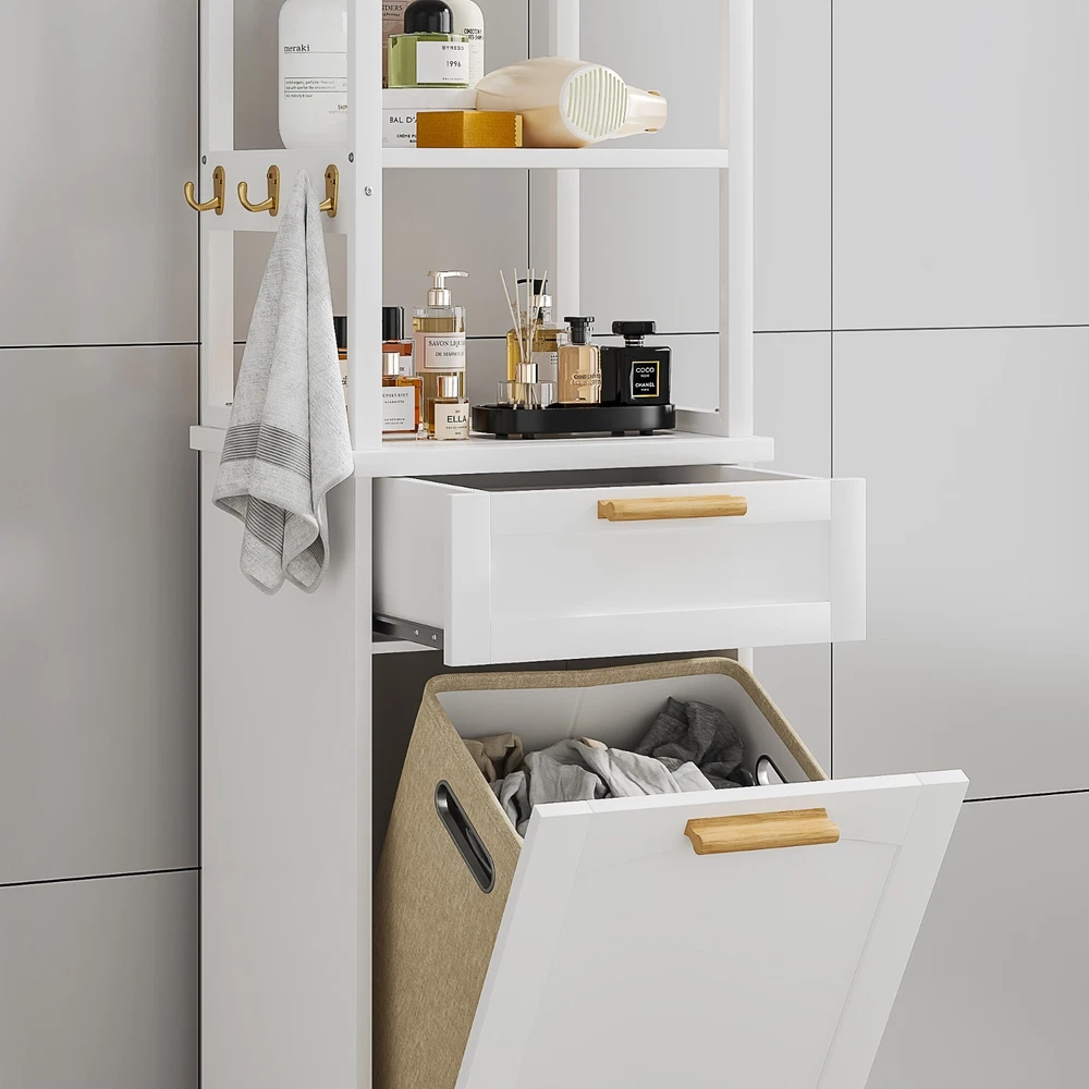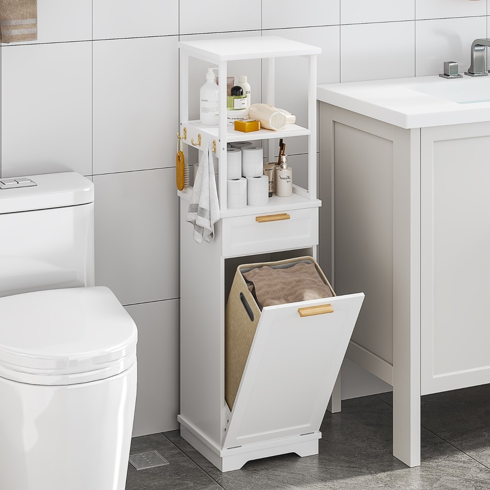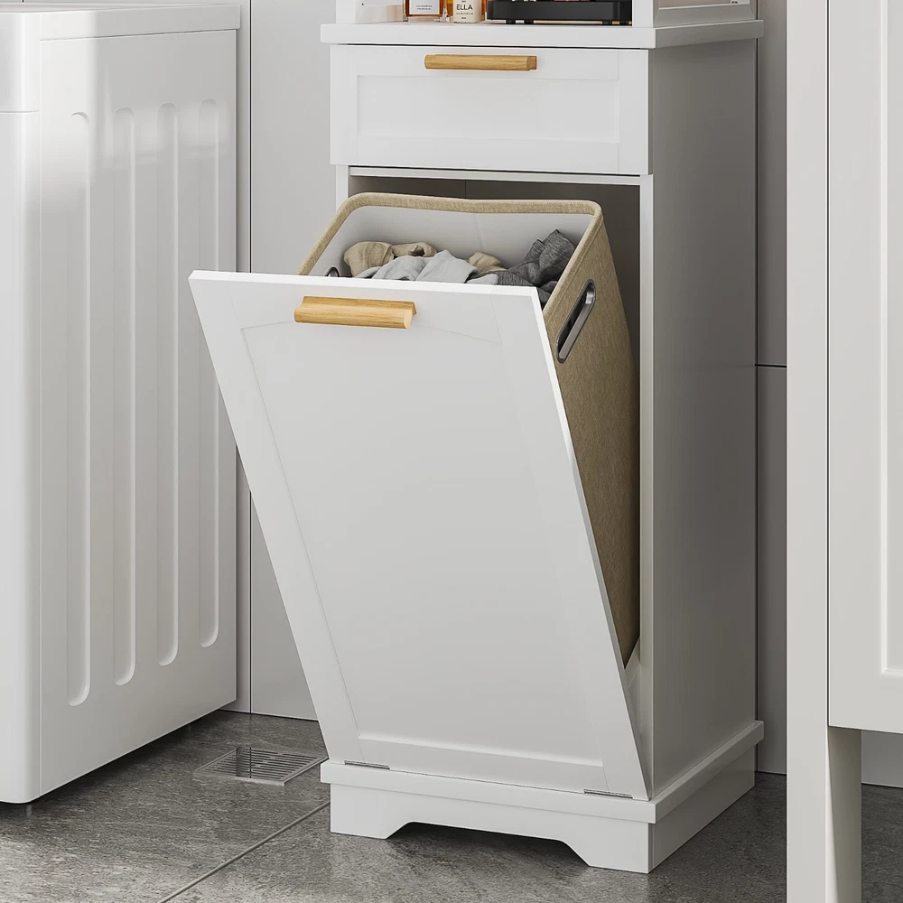 Tilt-Out Hidden Laundry Basket Cabinet with Shelf for Bathroom or Kitchen