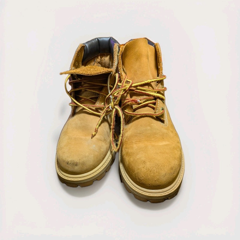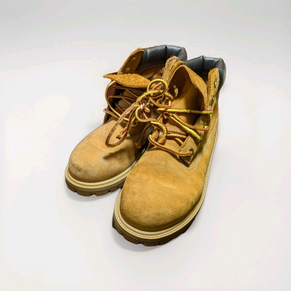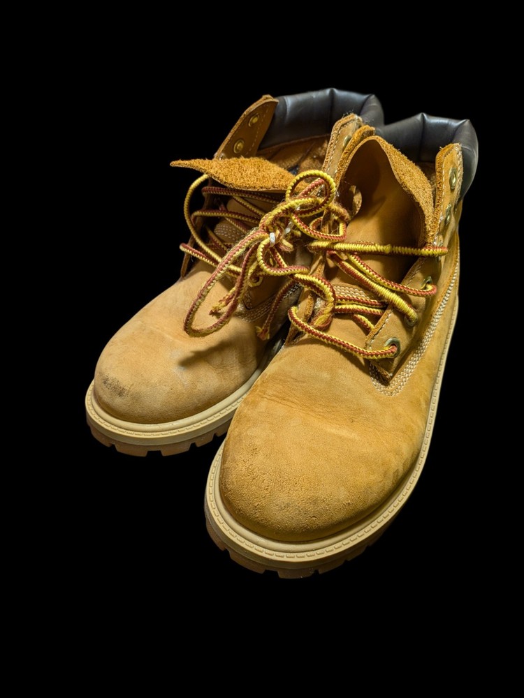 The Timberland Boots in youth size 2.5 Wheat are weatherproof combat-style boots designed for both boys and girls. These beige boots are perfect for walking, school, and hiking activities, making them a versatile and durable choice for young adventurers. With the trusted Timberland brand and standard shoe width, these boots offer both style and performance for active kids. The rugged design and reliable construction make them a practical and stylish option for everyday wear.