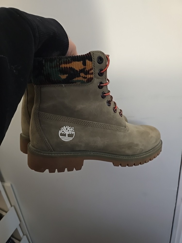 1. These Timberland Boots in Military Green are barely worn—only used twice! There’s a tiny scratch on the right shoe and slight lace damage, but they’re still in great condition. No box or tag, but I have the receipt for authenticity. Super comfy and sturdy, just not my style anymore. Price is flexible—great deal for a nearly new pair!