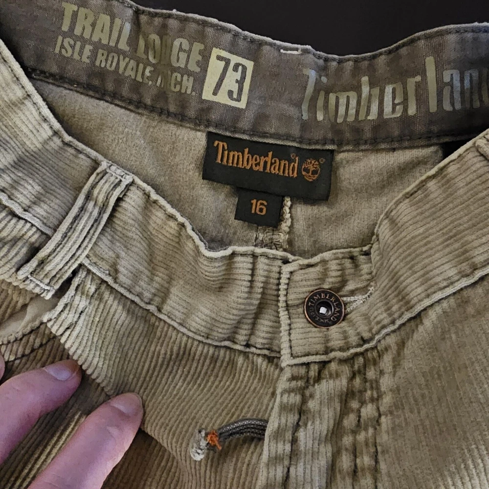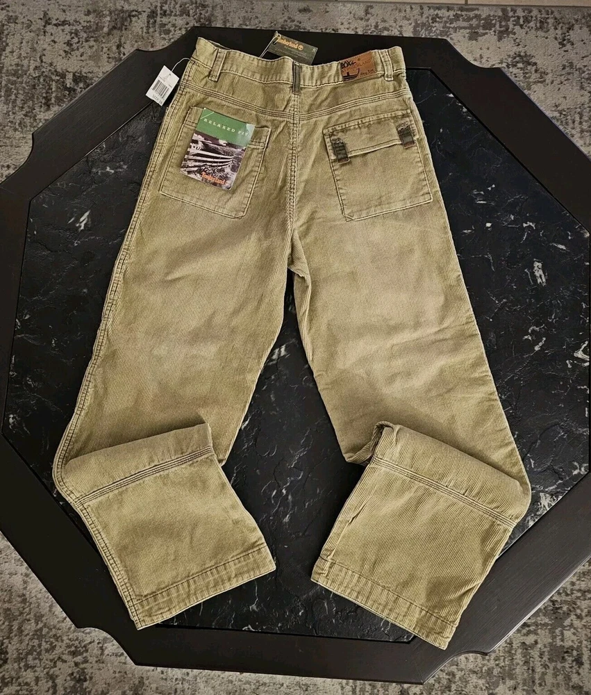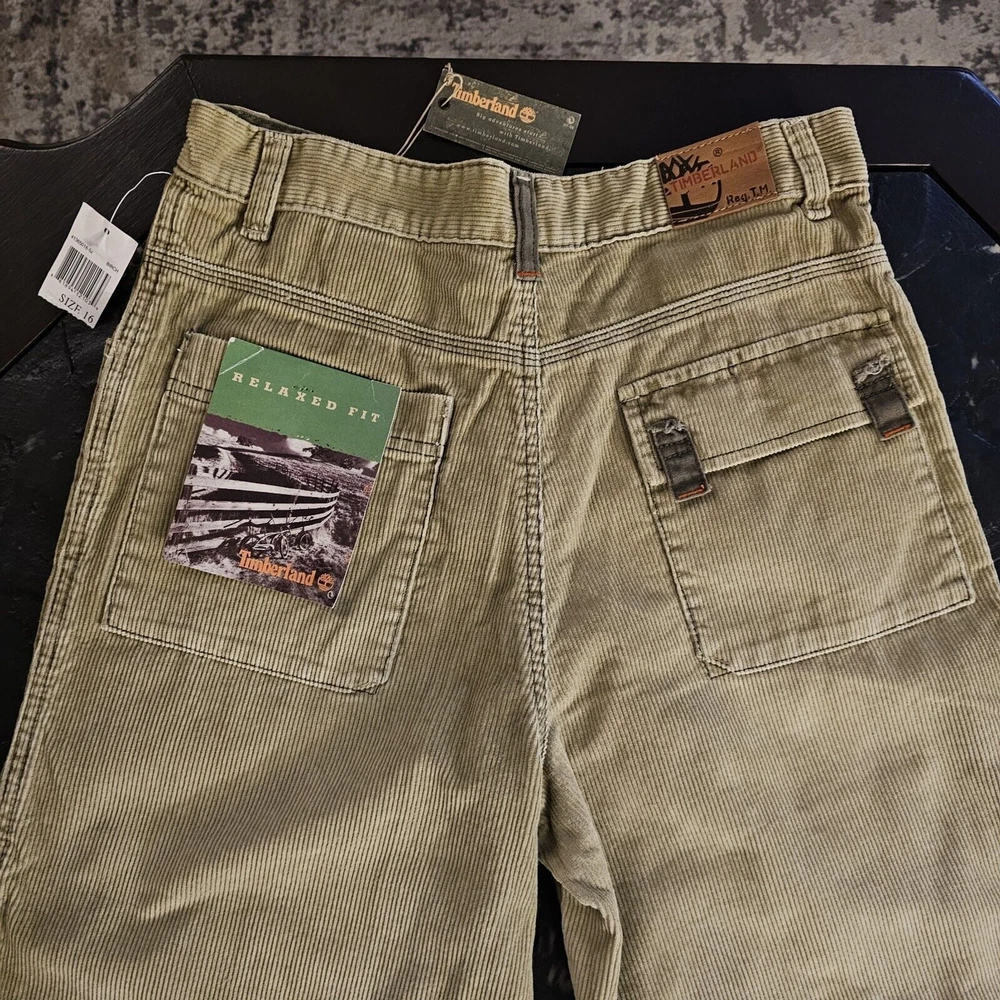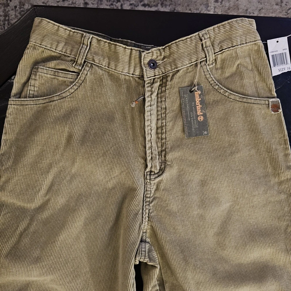 Timberland Y2K Tan Corduroy Pants Sz 16 Youth Boys 28 Baggy Jeans Vintage Cords Size 16 Youth (28 waist) Inseam 28 New with tags Wide leg style, 5 pocket design, leather logo back patch I personally purchased these in the early 2000s and they have been stored since
