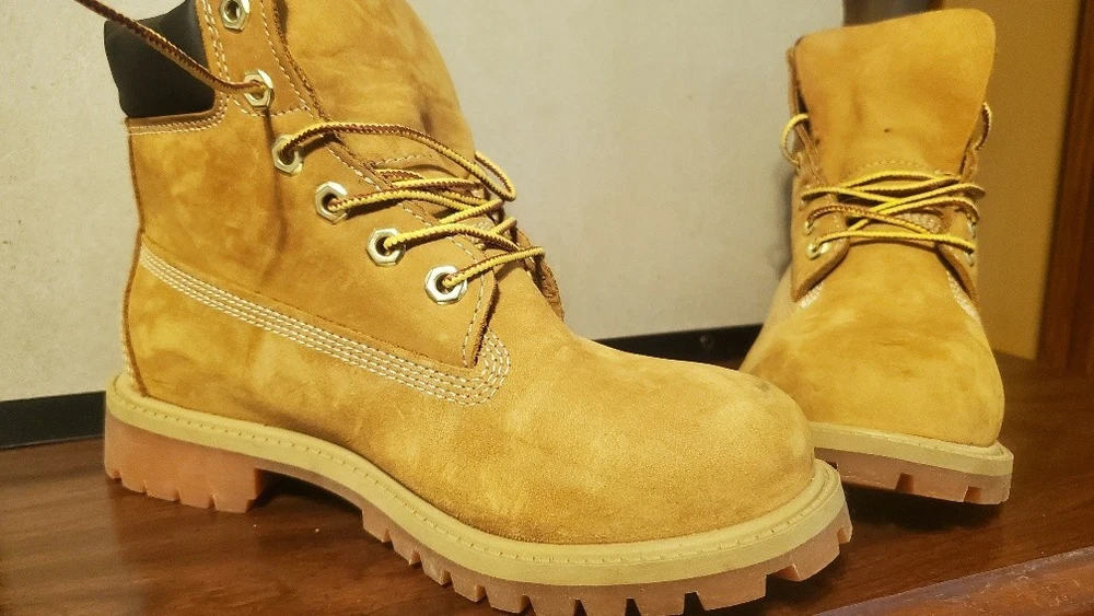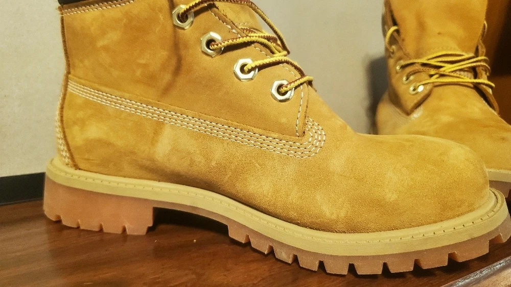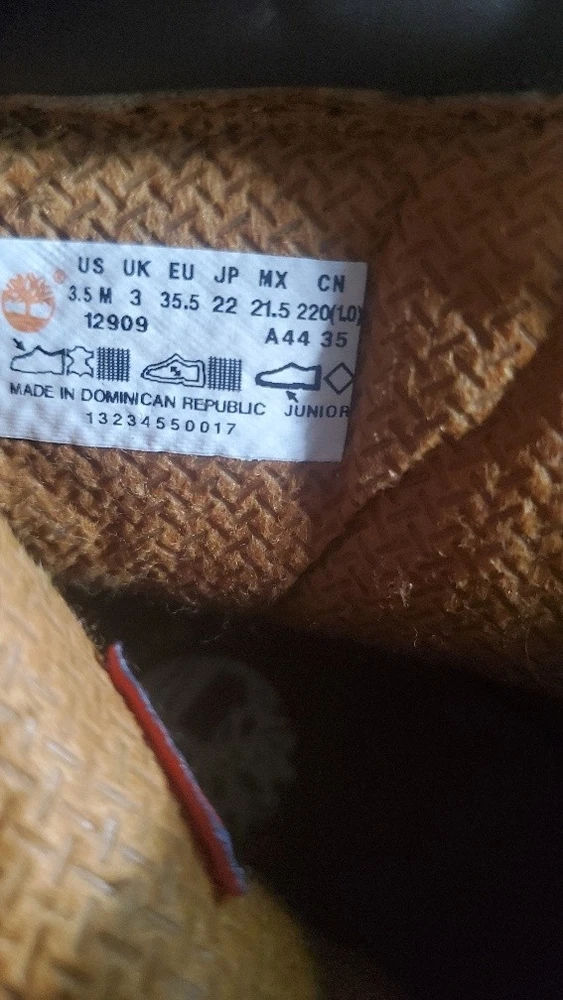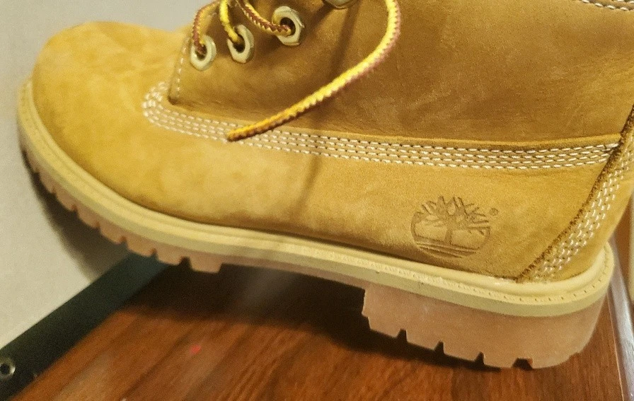 The Timberland Youth Size 3.5 Classic Original Wheat Waterproof Durable Boots are designed for boys with a round toe shape and lace-up closure for a secure fit. These ankle boots are perfect for casual occasions, featuring a waterproof leather upper and moderate cushioning level for comfort. The beige color and solid pattern add a stylish touch, while the rubber outsole provides durability and traction for winter, fall, and spring seasons. With the iconic Timberland logo accent, these boots are a practical and durable choice for active kids.