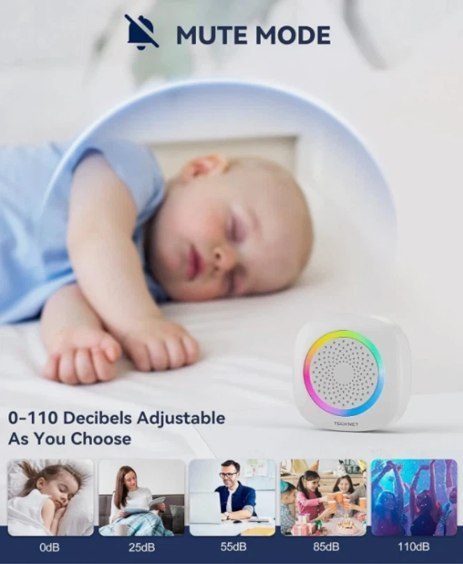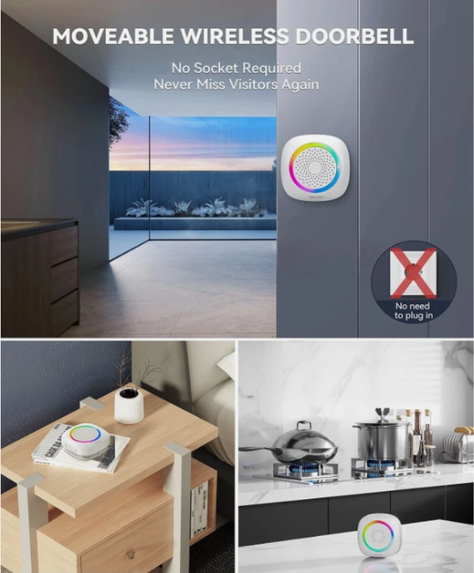 Timbre Inalámbrico 1300ft con Luz RGB 60+ Tonos Volumen Ajustable Blanco