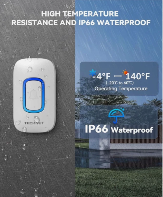 Timbre Inalámbrico 1300 ft con Luz RGB, 60+ Tonos, Volumen Ajustable, Blanco 🔔【Diseño portátil y uso versátil】 El timbre inalámbrico no necesita wifi ni enchufes. El receptor y el transmisor se pueden colocar como prefieras y usar como localizador. Puedes colocar el receptor sobre una mesa o guardarlo en tu bolso, como prefieras. Ya sea en el sótano, el garaje o el jardín, siempre sabrás quiénes son tus visitantes. 🔔【Batería con 36 meses de duración】 Este timbre inalámbrico incluye una función de suspensión. Tras unos minutos de inactividad, el kit de timbre entra en modo de suspensión. Pulsa cualquier botón para activar el receptor. El receptor funciona con 3 pilas AA (no incluidas) y tiene una duración de hasta 36 meses de uso diario, lo que reduce la necesidad de cambiar las pilas con frecuencia. 🔔【Timbre inalámbrico con indicador de luz RGB】El indicador de luz RGB del receptor a pilas parpadea al activarse el transmisor y recibir una señal. El volumen de 110 dB puede alertar a personas con discapacidad auditiva o personas mayores. Puede silenciar el timbre de la puerta principal cuando no necesite tono de llamada y usar la luz RGB para notificarle visualmente cuando alguien esté en la puerta. 🔔【60 Melodías, 5 Niveles de Volumen y Función de Memoria】Este timbre inalámbrico impermeable para exteriores ofrece 60 melodías seleccionables, 5 niveles de volumen ajustables de 0 dB a 110 dB y un modo silencioso para adaptarse a sus preferencias. La función de memoria garantiza que el kit de timbre inalámbrico recuerde la última melodía y el ajuste de volumen seleccionados, incluso en caso de un corte de energía. 🔔【Alcance Inalámbrico de 400 m】El timbre inalámbrico tiene un alcance de hasta 400 m en espacios abiertos sin interrumpir otros dispositivos inalámbricos cercanos. Una señal de radio robusta y estable le garantiza que nunca perderá a una visita. Nota: El transmisor incluido contiene pilas, mientras que el receptor no (requiere 3 pilas AA). 🔔【IP66 Resistente al agua y al polvo】El timbre inalámbrico luce un diseño elegante y contemporáneo, con materiales de alta calidad que protegen el pulsador de temperaturas elevadas e interferencias. El timbre frontal a pilas es resistente al agua (IP66) y lo suficientemente robusto como para soportar entornos extremos. Mantiene el transmisor inalámbrico en condiciones de lluvia y funciona en diversos climas, desde -20 °C hasta 60 °C. SHIPPING: We offer FREE shipping on all orders! We ship within Three business days of payment, usually sooner. We use a selection of shipping services such as UPS, FedEx, USPS etc. We only ship to the lower 48 states, no APO/FPO addresses or PO Boxes allowed. Local pickups and combined shipping options are not provided at this time. PAYMENT: We accept payment by any of the following methods: PayPal Please pay as soon as possible after winning an auction, as that will allow us to post your item to you sooner! FEEDBACK: Customer satisfaction is very important to us. If you have any problem with your order, please contact us and we will do our best to make you satisfied. Thank you for shopping with us!